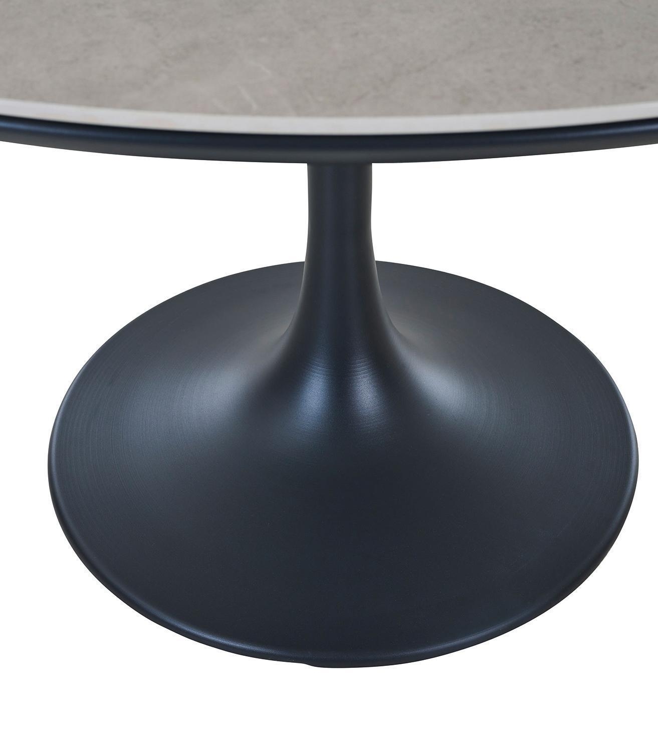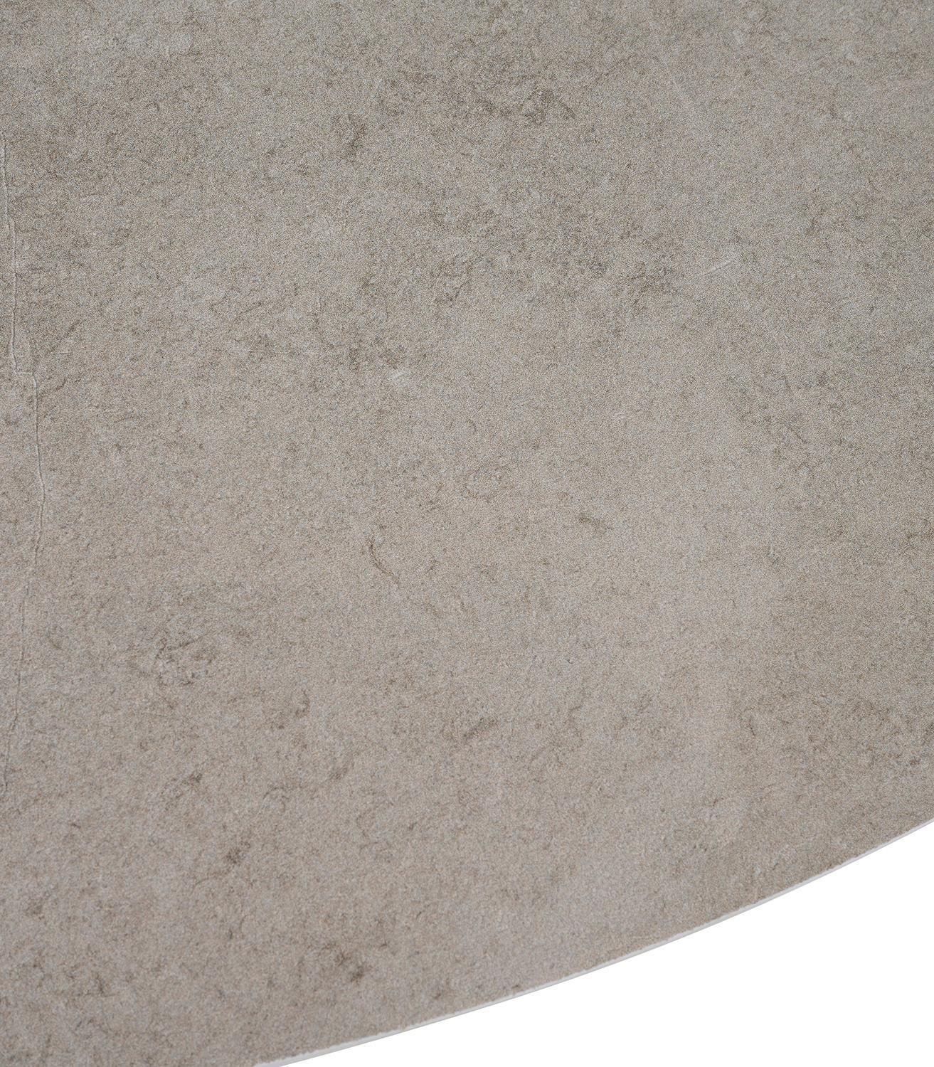 Der Gartentisch LATEA der Marke MONDO ist mit einer runden Tischplatte aus gesintertem Stein in Betongrau ausgestattet und verfügt über ein anthrazitfarbenes Gestell aus pulverbeschichtetem Aluminium. Dieser Outdoor-Tisch weist einen Durchmesser von 120 cm sowie eine Höhe von 74 cm auf. Die Oberfläche der Tischplatte ist kratzfest und fleckenabweisend. In seinen Dimensionen ist dieser Terrassentisch für die Nutzung durch 4 Personen konzipiert.