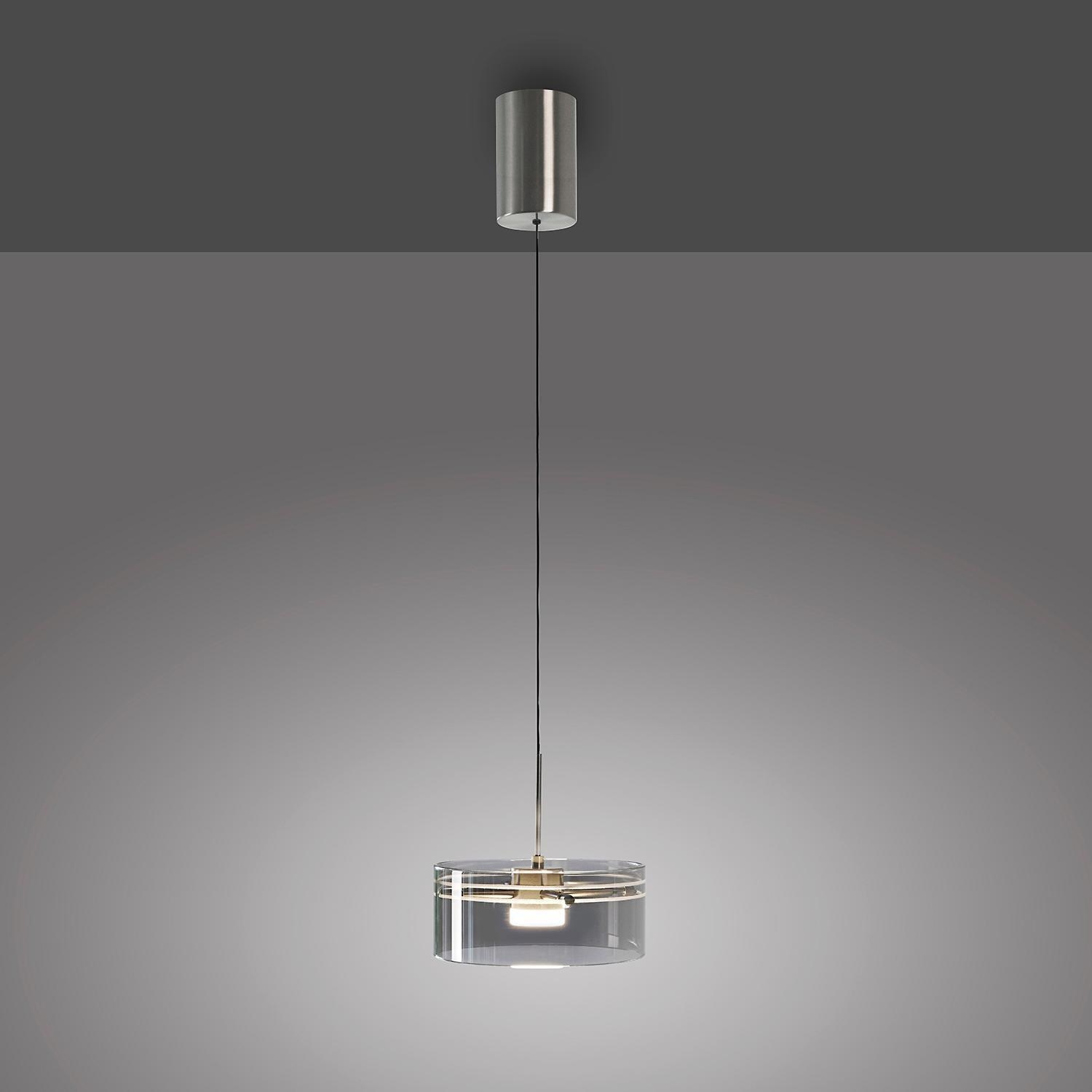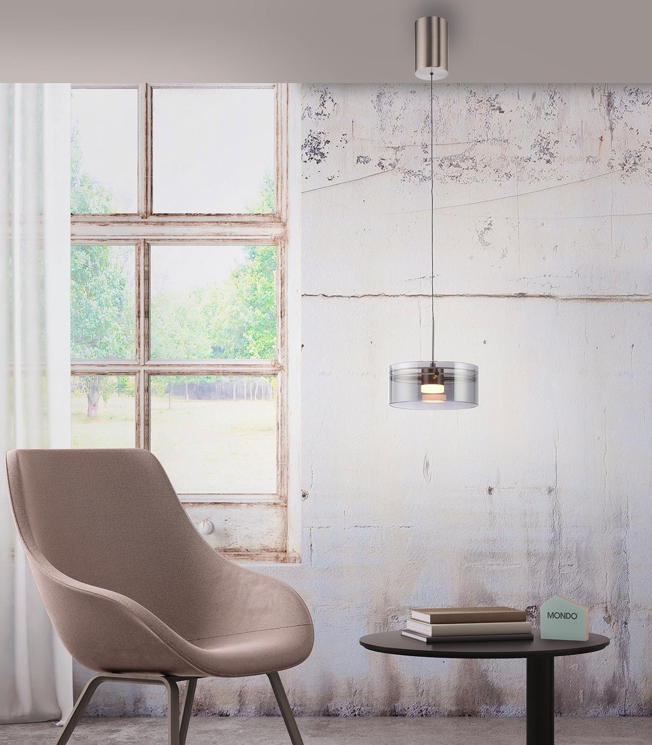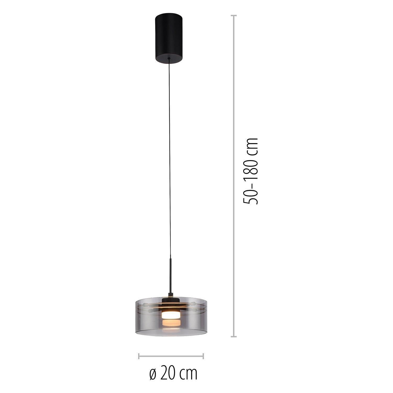 Die LED-Pendelleuchte KARENA der Marke MONDO besteht aus stahlgrauem Metall und ist mit einem Lampenschirm aus rauchfarbenem Glas ausgestattet. Sie besitzt einen Durchmesser von 20 cm und eine maximale Höhe von 180 cm. Die Höhenverstellung erfolgt über den Comfort-Lift-Mechanismus. Die Leuchte ist mit einem fest verbauten LED-Leuchtmittel ausgestattet, das im Lieferumfang enthalten ist und nicht ausgetauscht werden kann. Es verfügt über eine Leistung von 8 Watt, einen Lichtstrom von 1080 lm sowie eine warmweiße Lichtfarbe mit 3000 K.