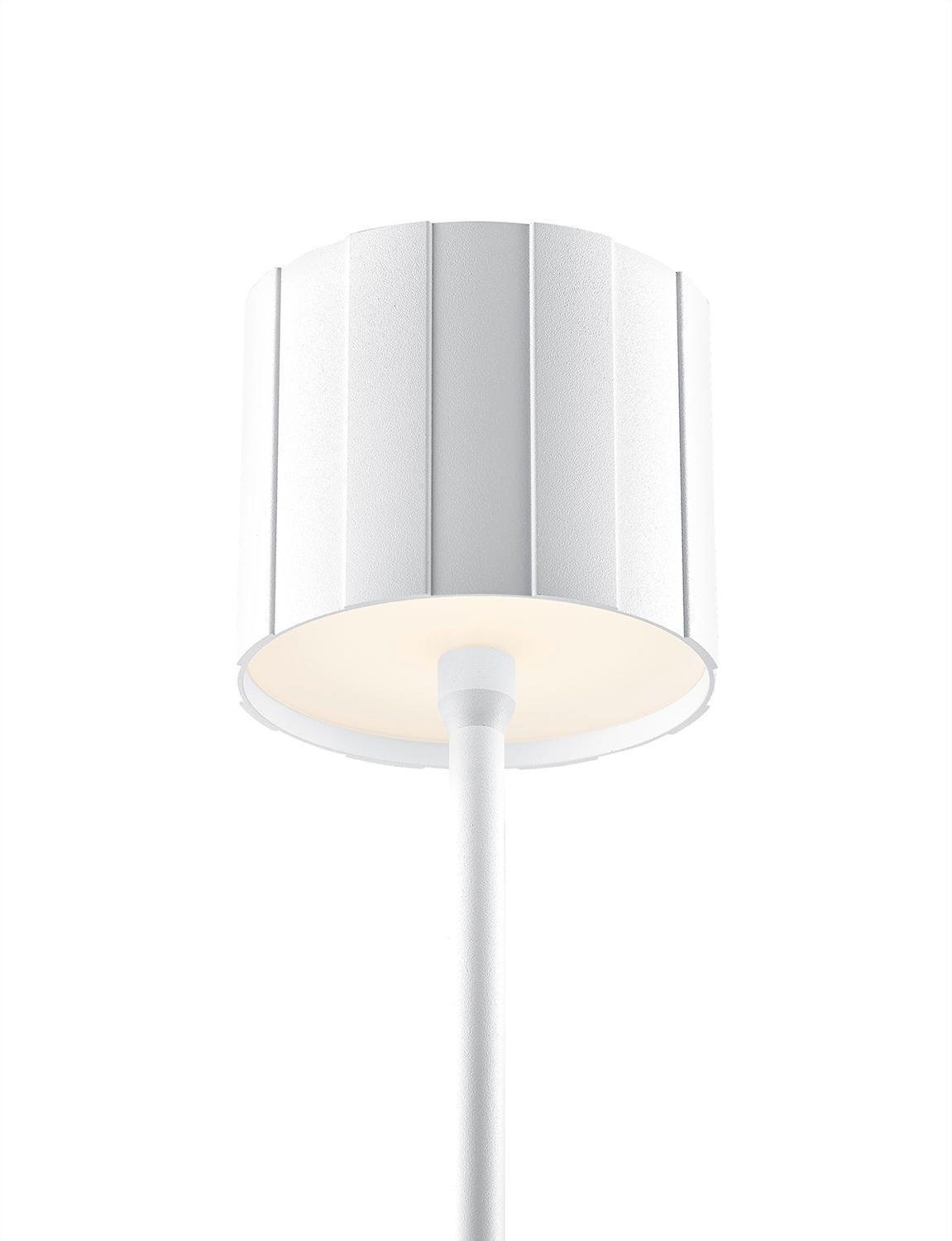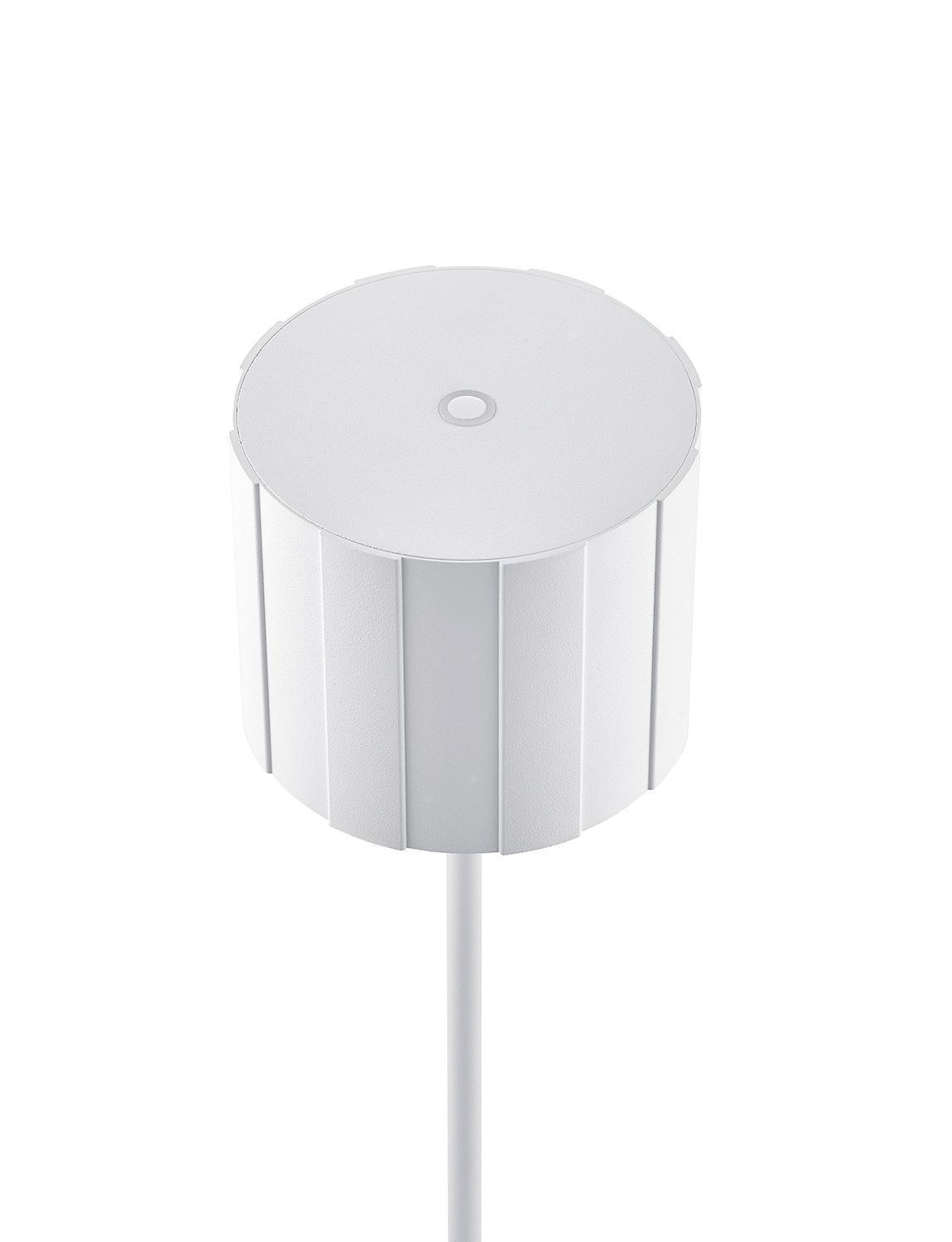 Die Akku LED-Stehlampe MARISA der Marke Musterring besteht aus weiß lackiertem Metall und ist mit einem wiederaufladbaren Akku ausgestattet, der über einen USB-Anschluss geladen wird. Die Höhe lässt sich variabel einstellen, wodurch die Lampe flexibel positioniert werden kann. Ein- und ausgeschaltet wird sie über einen integrierten Touchsensor. Dank IP44-Zertifizierung eignet sie sich auch für den Einsatz in Nassräumen. Die Anpassung der Farbtemperatur im Bereich von 2300 bis 4000 Kelvin sowie die Dimmfunktion können komfortabel über die mitgelieferte Fernbedienung gesteuert werden. Zusätzlich ist eine Memoryfunktion vorhanden, die die zuletzt gewählten Einstellungen speichert. Die Lampe verfügt über ein fest verbautes LED-Leuchtmittel mit einer Leistung von 3,5 Watt und einer Lichtstärke von 420 Lumen. Der Durchmesser beträgt 15 cm, die Höhe 125 cm.
