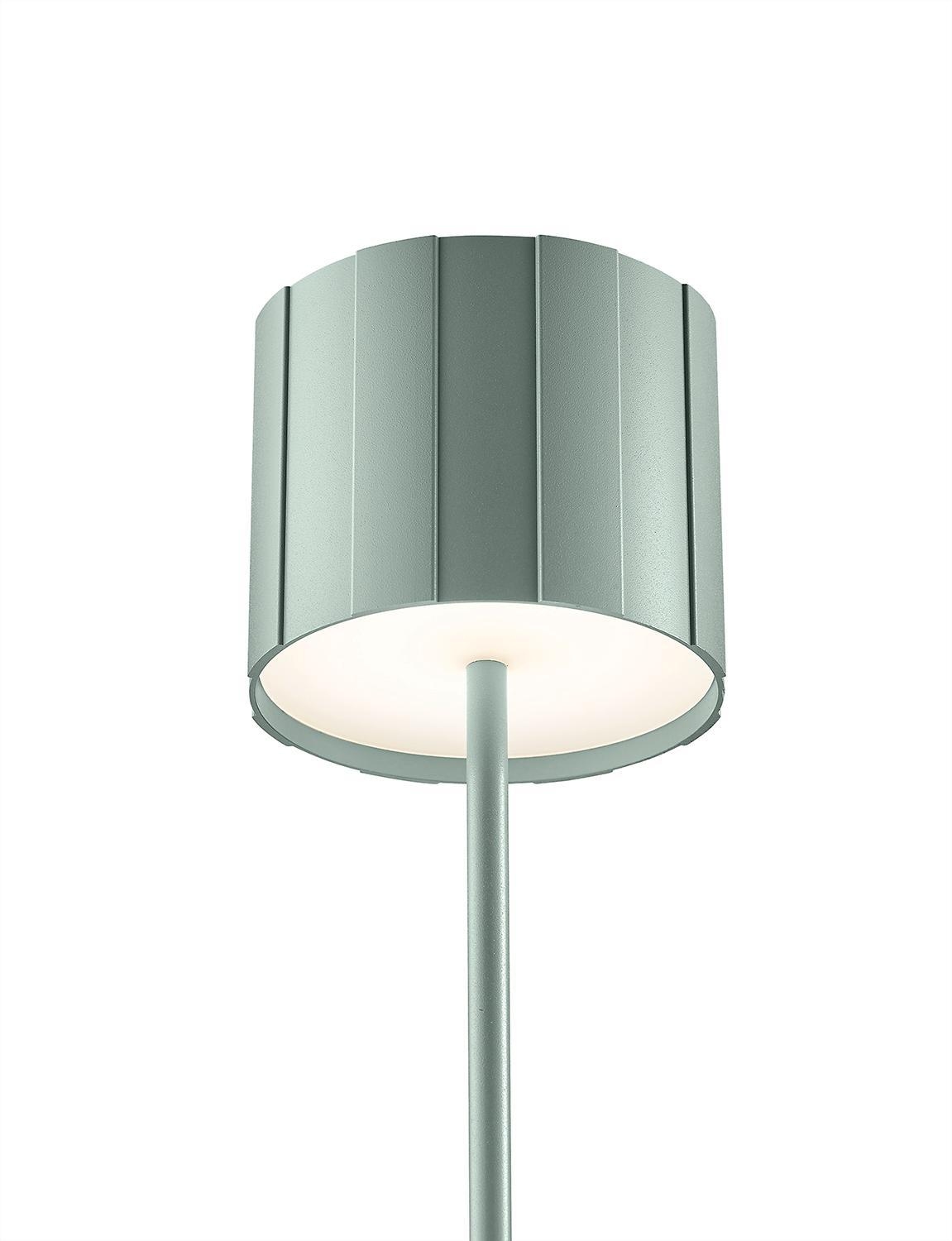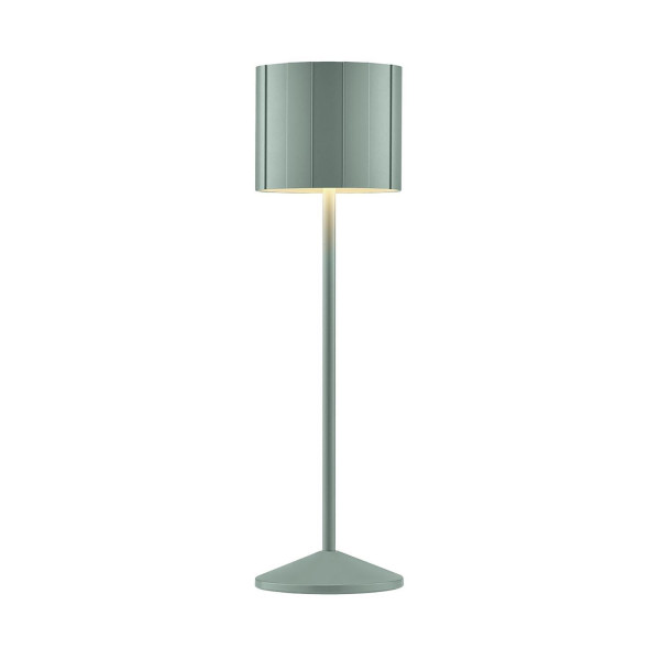 Die Akku LED-Tischlampe MARISA der Marke Musterring besteht aus grün lackiertem Metall und ist mit einem wiederaufladbaren Akku ausgestattet, der über einen USB-Anschluss geladen wird. Die Höhe lässt sich variabel einstellen, wodurch die Lampe flexibel positioniert werden kann. Ein- und ausgeschaltet wird sie über einen integrierten Touchsensor. Dank IP44-Zertifizierung eignet sie sich auch für den Einsatz in Nassräumen. Die Anpassung der Farbtemperatur im Bereich von 2300 bis 4000 Kelvin sowie die Dimmfunktion können komfortabel über die mitgelieferte Fernbedienung gesteuert werden. Zusätzlich ist eine Memoryfunktion vorhanden, die die zuletzt gewählten Einstellungen speichert. Die Lampe verfügt über ein fest verbautes LED-Leuchtmittel mit einer Leistung von 3,5 Watt und einer Lichtstärke von 420 Lumen. Der Durchmesser beträgt 11 cm, die Höhe 39 cm.