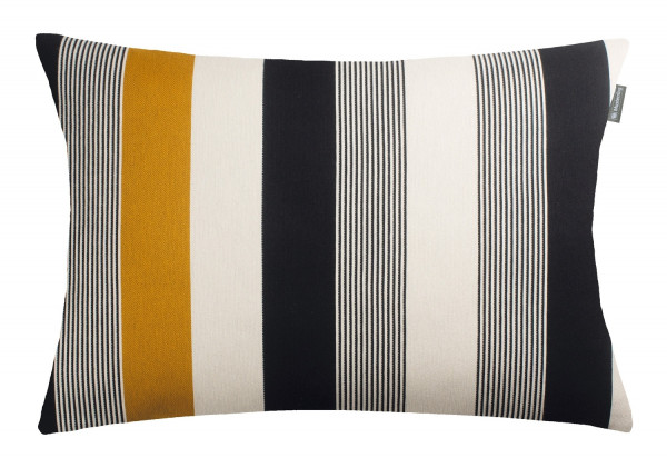 Die Kissenhülle STRIPE präsentiert sich in den Farben Schwarz, Weiß und Gelb mit Längsstreifen. Mit einer Größe von 60 x 40 cm bietet sie ausreichend Platz für verschiedene Kisseninhalte. Hergestellt aus einer Mischung aus Polyester und Baumwolle und ausgestattet mit einem praktischen Reißverschluss, ist sie sowohl ansprechend im Design als auch funktional in der Handhabung. Hinweis: Das Inlett ist separat erhältlich.