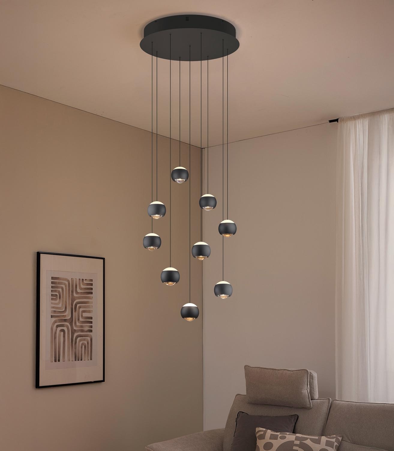 | Lieferumfang: | 1 höhenverstellbare Pendelleuchte mit 9 integrierten LED-Leuchtmitteln und Fernbedienung |