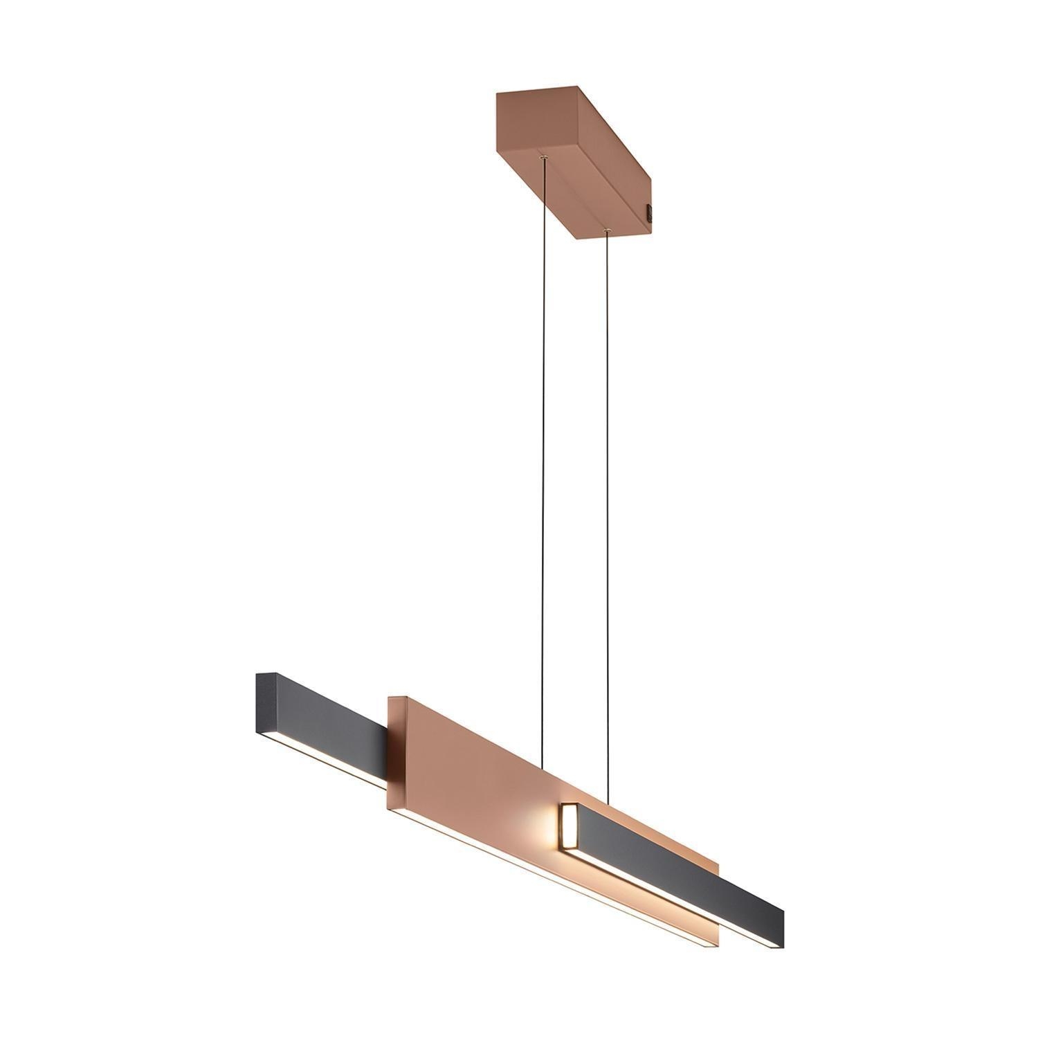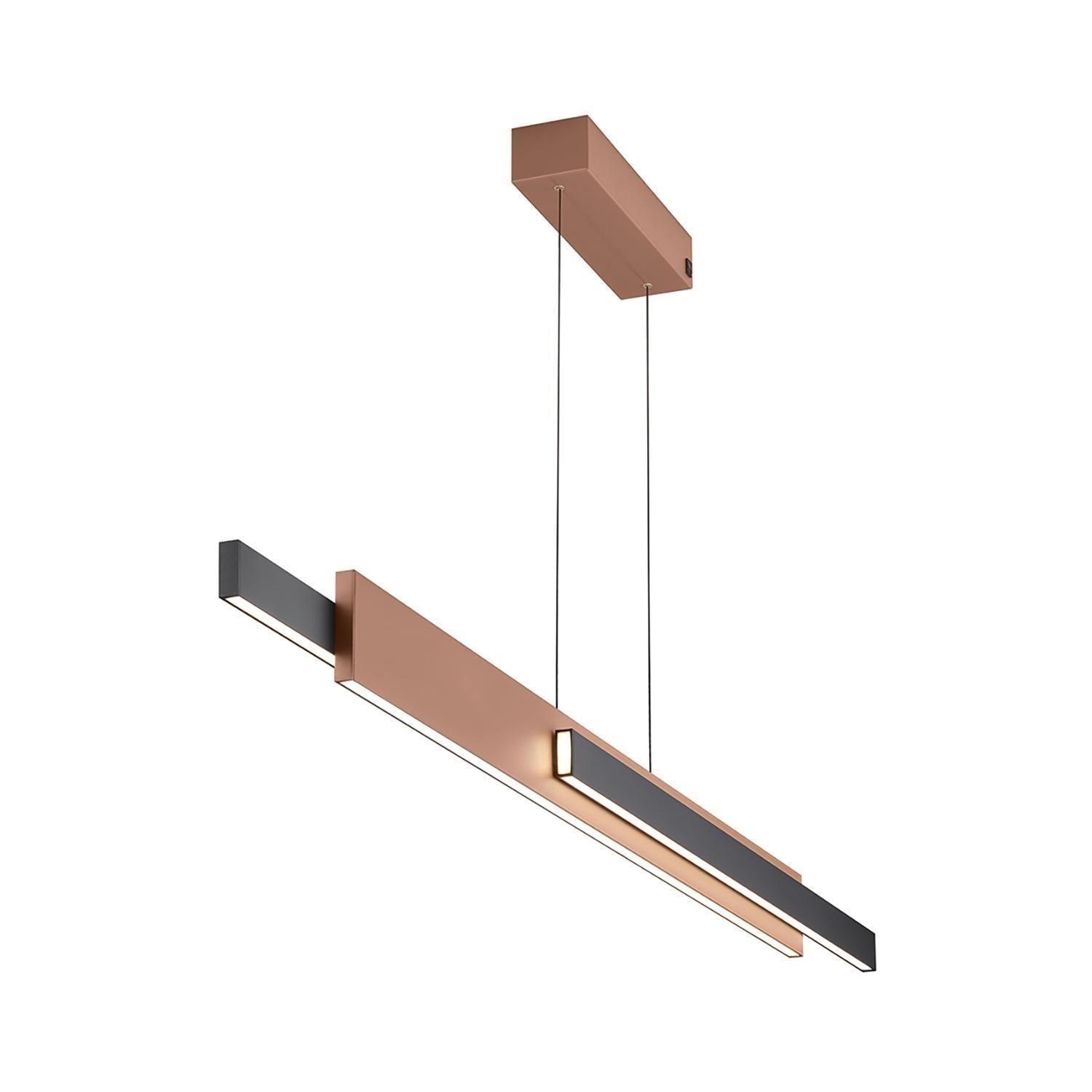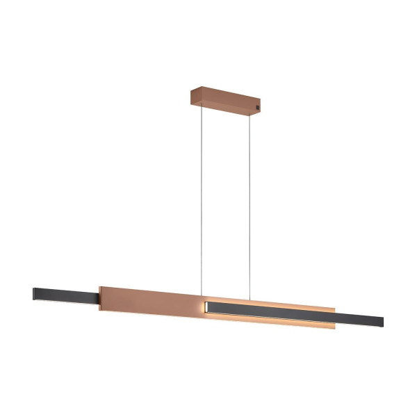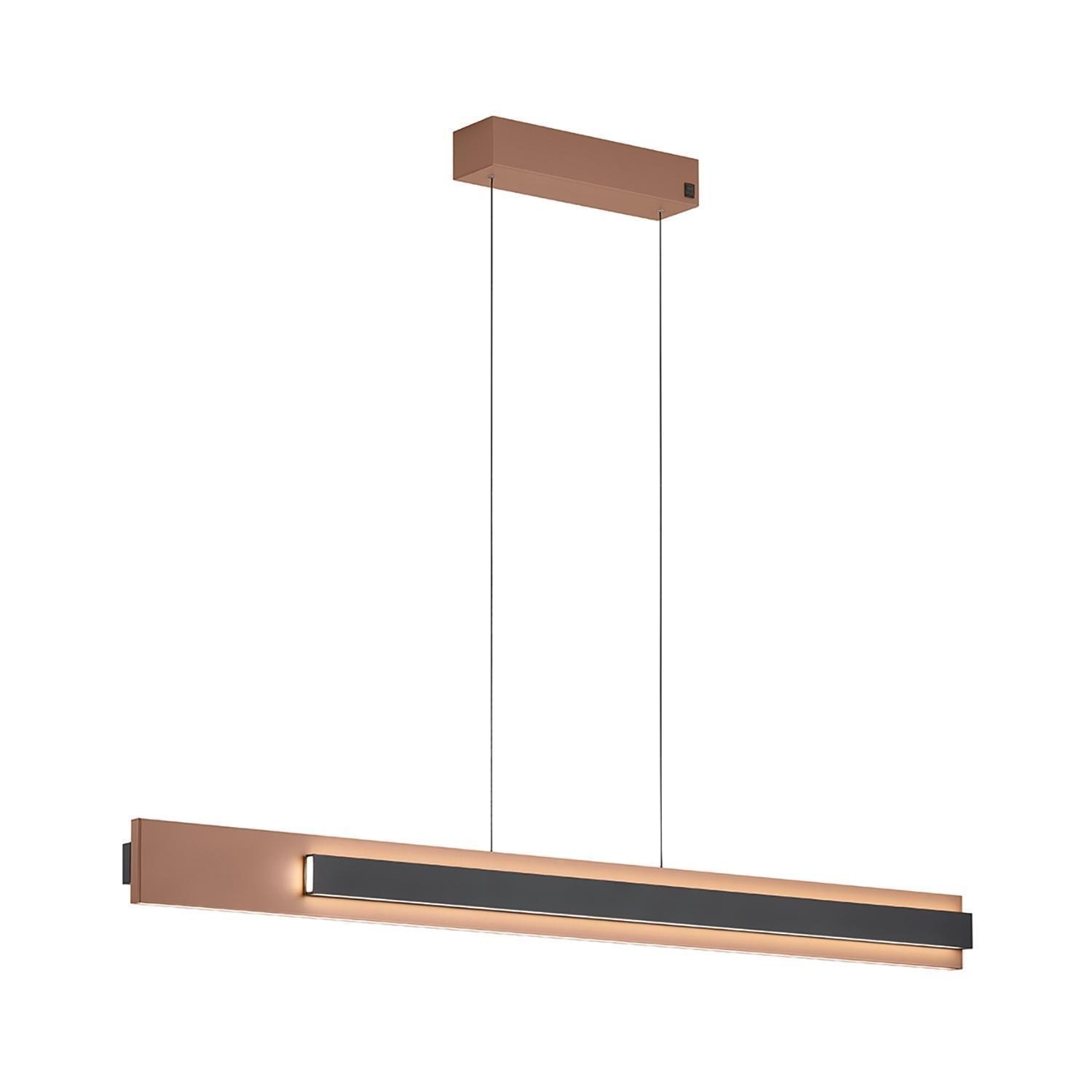 Die LED-Pendelleuchte RIVERA von der Marke Musterring ist eine Leuchte aus Metall, die in Braun und Schwarz gestaltet ist. Das Modell weist eine Breite von 190 cm sowie eine Tiefe von 6 cm auf. Es ist sowohl in der Breite ausziehbar als auch in der Höhe variabel von 60 cm bis 150 cm einstellbar.