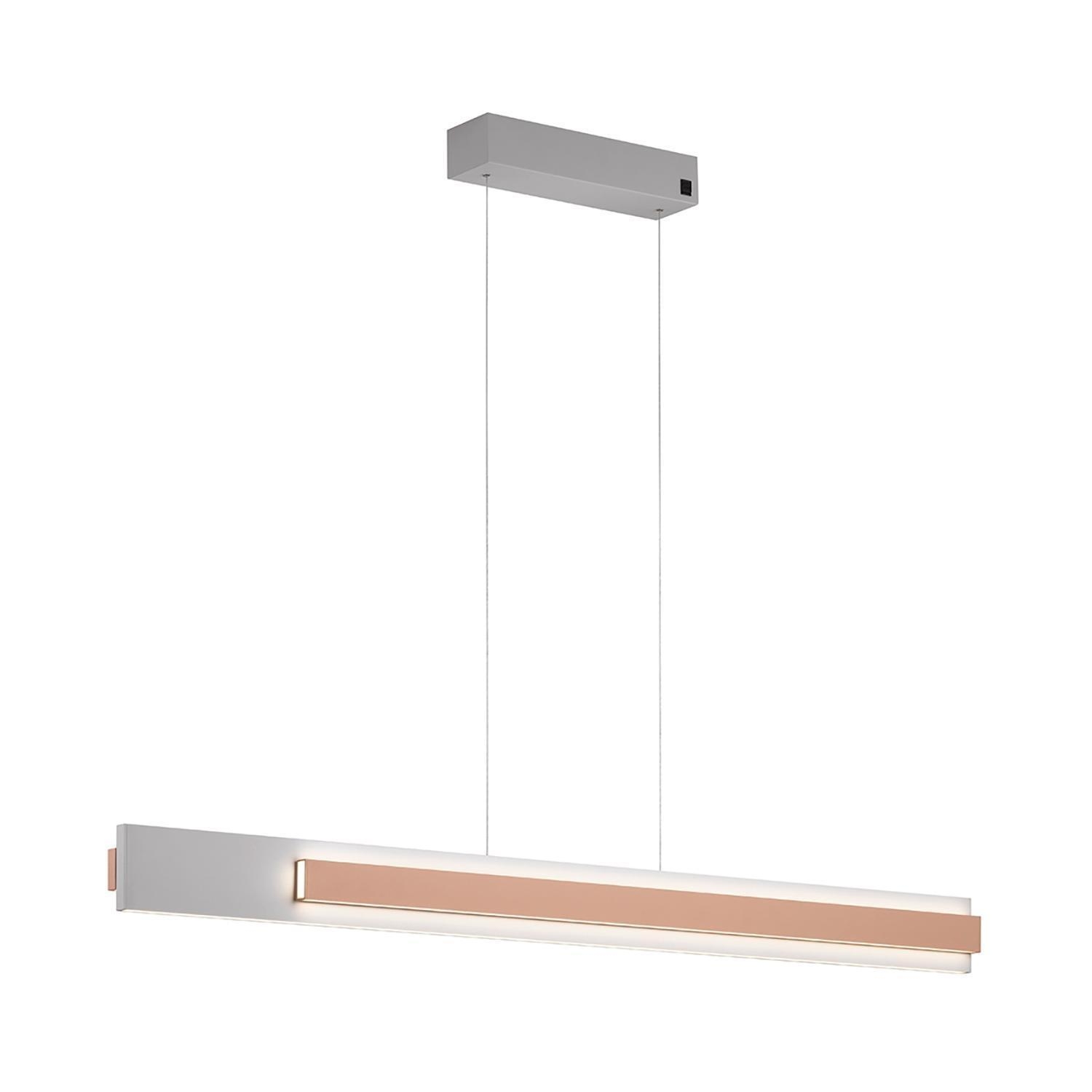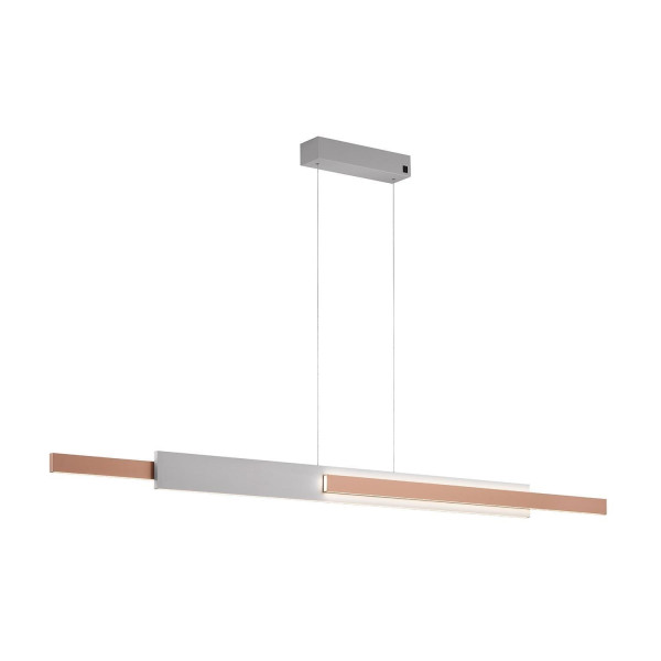 Die LED-Pendelleuchte RIVERA von der Marke Musterring ist eine Leuchte aus Metall, die in Braun und Grau gestaltet ist. Das Modell weist eine Breite von 190 cm sowie eine Tiefe von 6 cm auf. Es ist sowohl in der Breite ausziehbar als auch in der Höhe variabel von 60 cm bis 150 cm einstellbar.