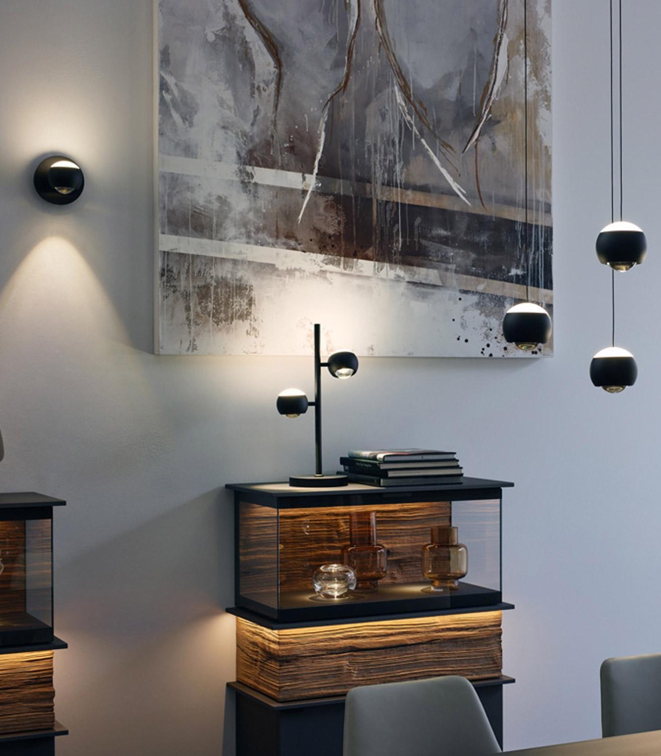 Die Lampenschirme der Tischleuchte verfügen über eine Up-Down-Beleuchtung. Damit strahlt sie die Lichter nicht nur nach unten ab, sondern wirft auch Lichter nach oben an die Decke und Wände.