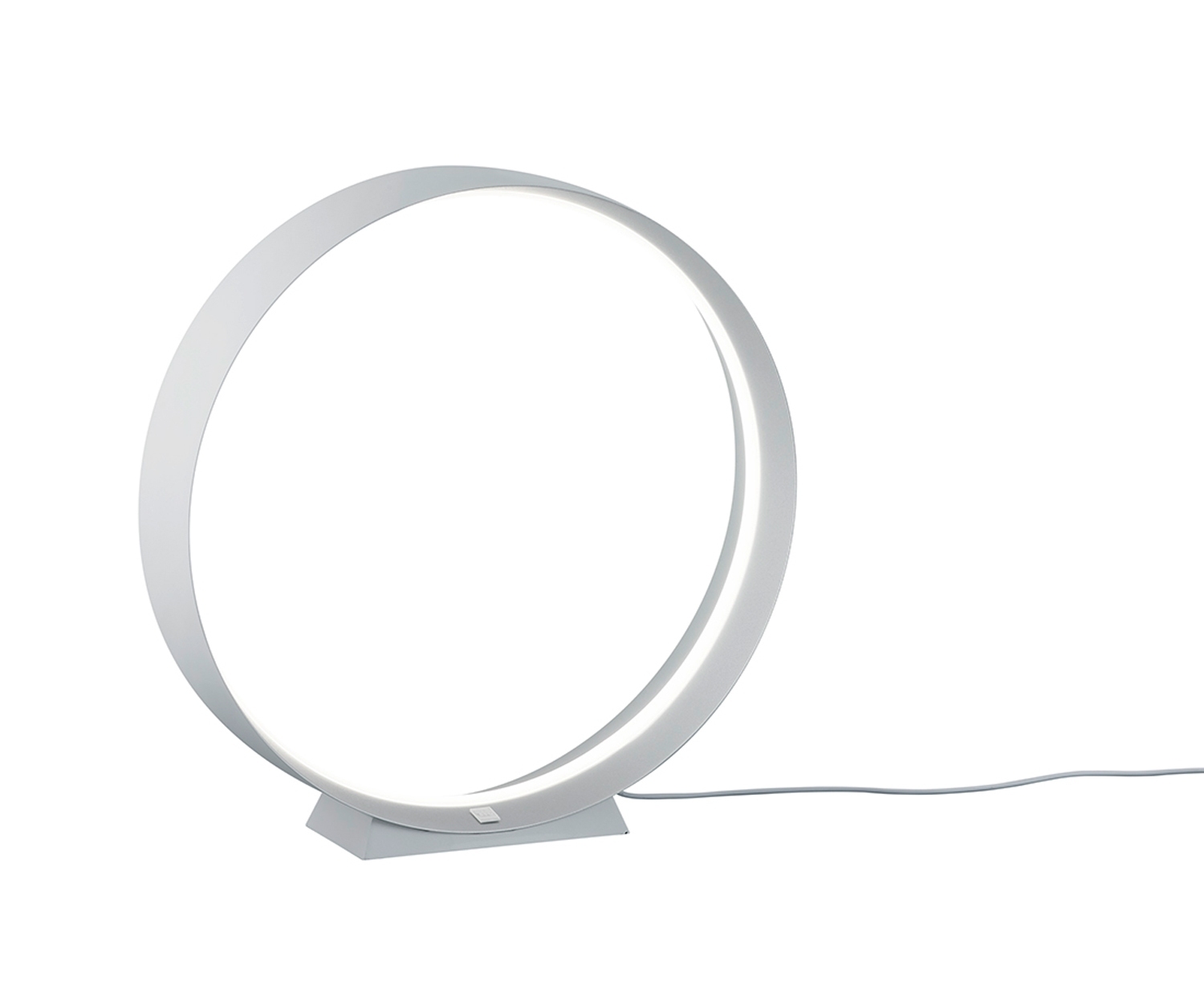 Die LED-Tischlampe LOOP von Musterring kombiniert modernes Design mit funktionaler Beleuchtung. Hergestellt aus weißem Metall und ergänzt durch einen silbergrauen Lampenschirm, fügt sie sich stilvoll in jedes Interieur ein. Die Lampe ermöglicht die Anpassung der Farbtemperatur und ist dimmbar, wobei beides bequem über eine Fernbedienung gesteuert werden kann. Ein- und ausgeschaltet wird sie über einen praktischen Schnurschalter. Mit Maßen von 45 cm in der Breite, 45 cm in der Höhe und 10 cm in der Tiefe passt sie perfekt auf jeden Tisch. Das integrierte LED-Leuchtmittel hat eine Leistung von 15 Watt, liefert 1800 Lumen Helligkeit und bietet Farbtemperaturen von 2700 bis 6000 Kelvin. Ein Austausch des Leuchtmittels ist nicht möglich.
