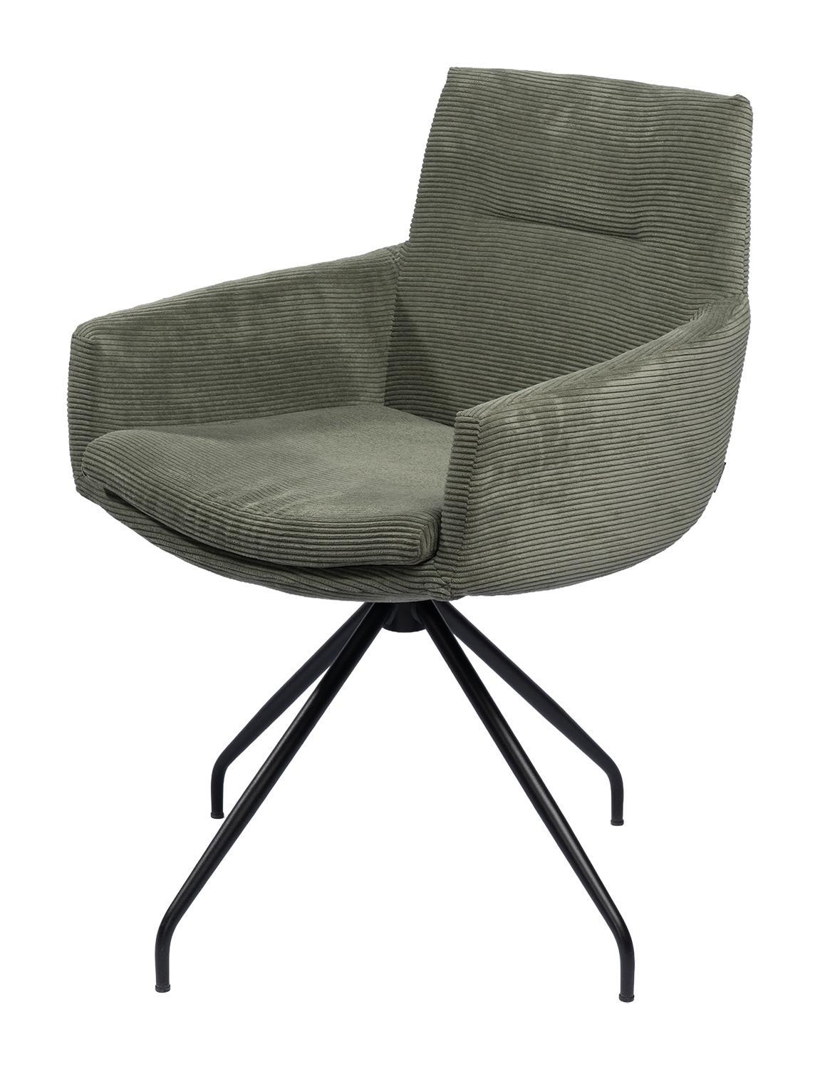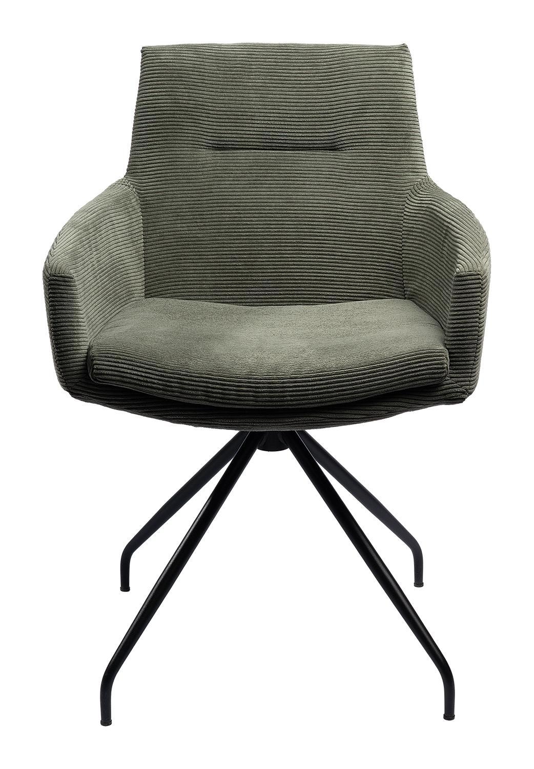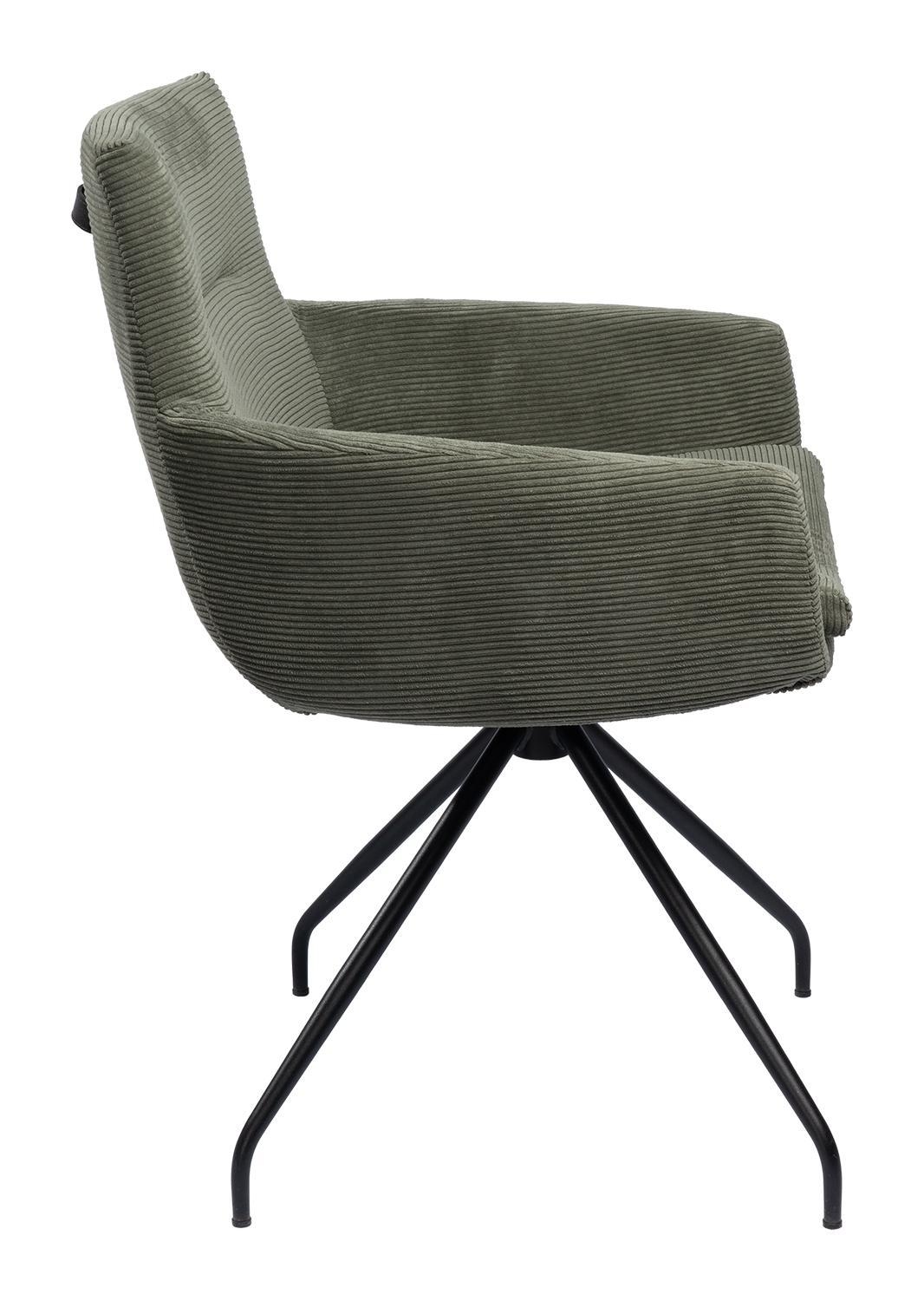 Olivgrün - Schwarz matt - Feincord - Metallgestell - mit Armlehnen - 360 Grad drehbar