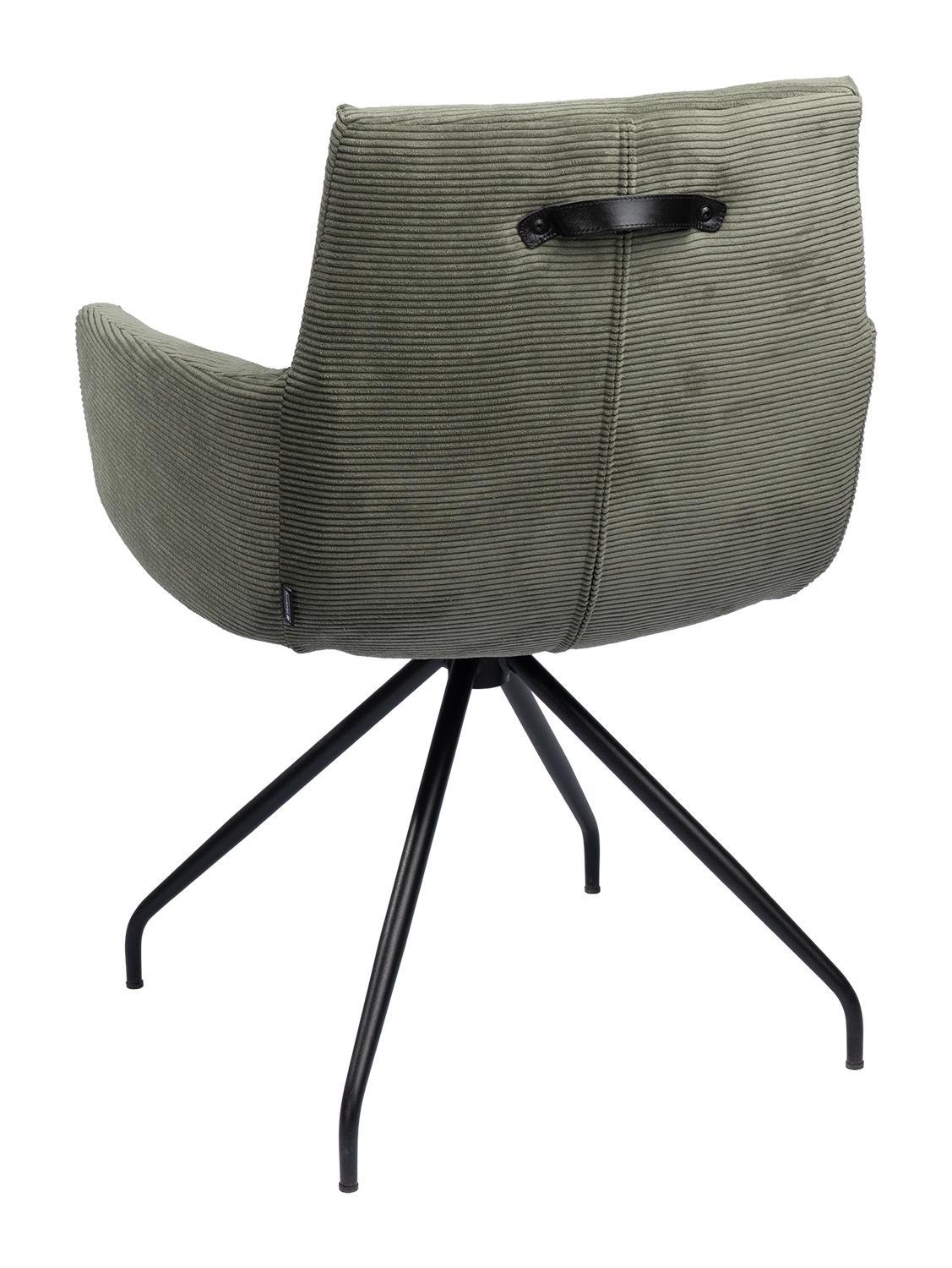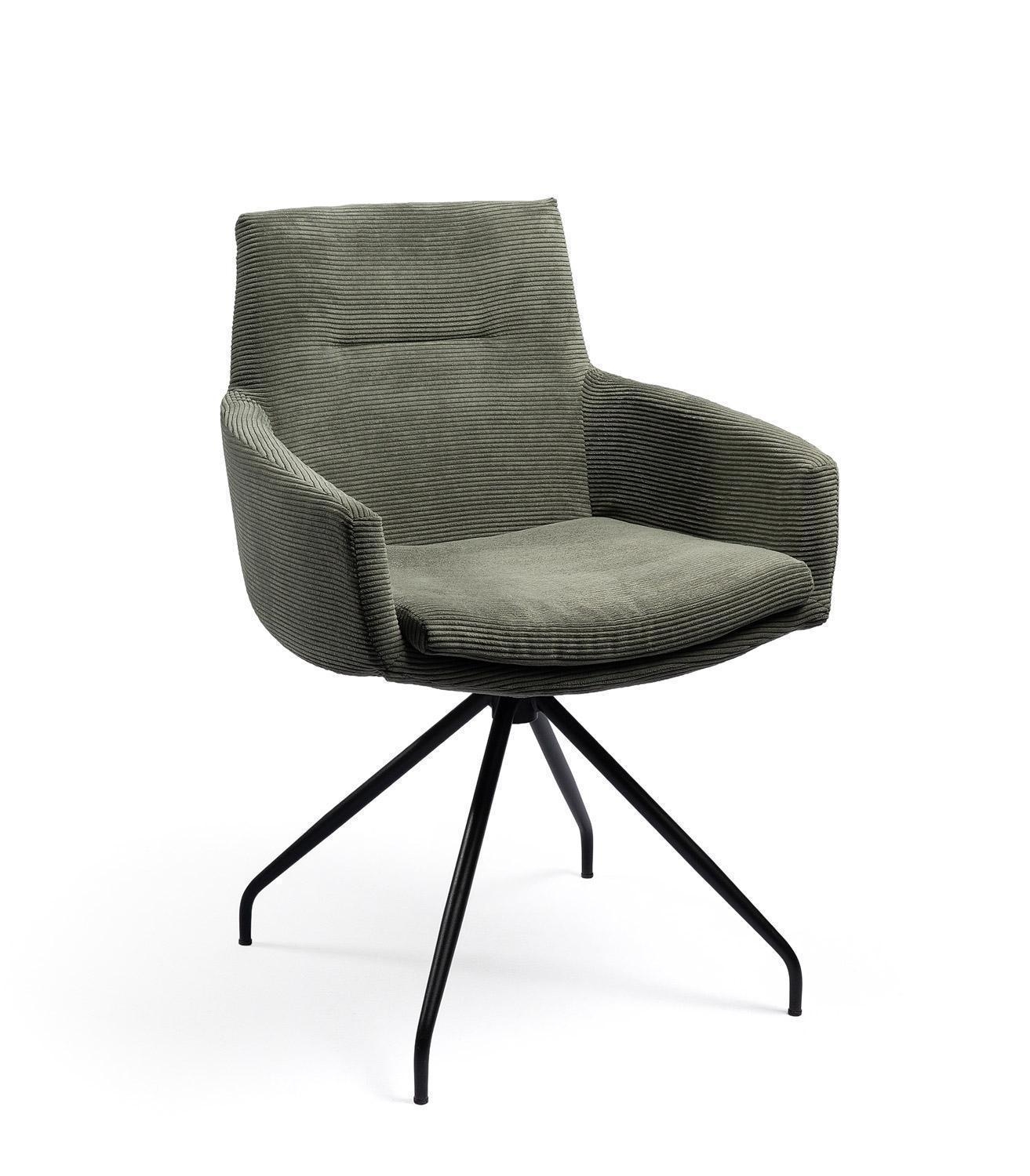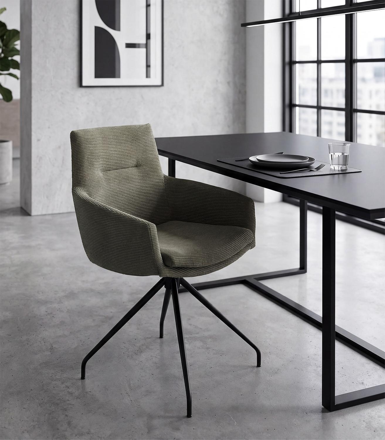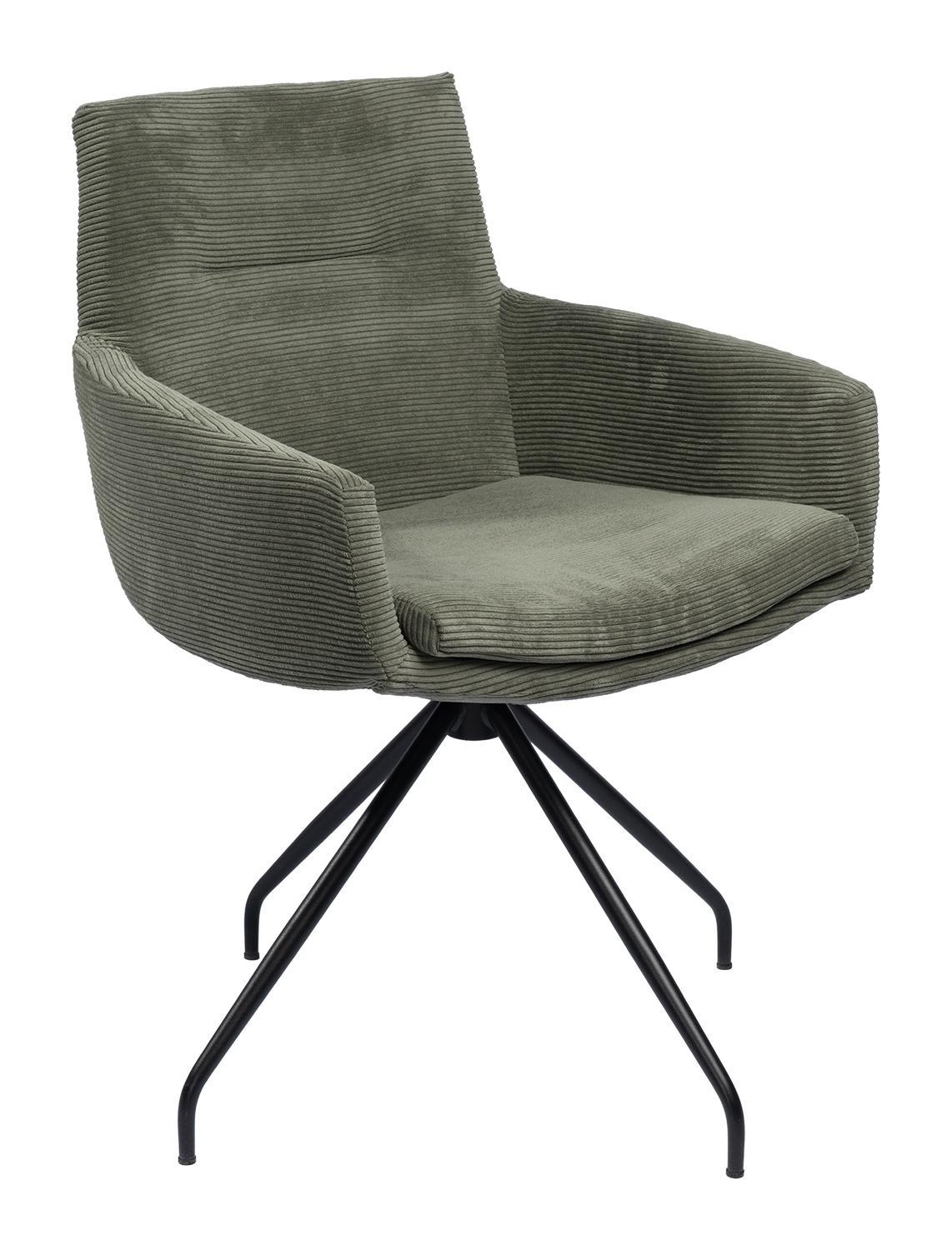 Olivgrün - Schwarz matt - Feincord - Metallgestell - mit Armlehnen - 360 Grad drehbar