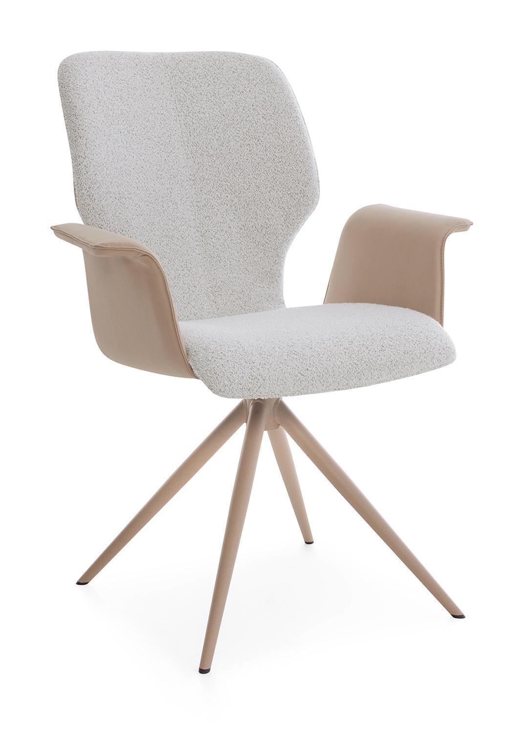 Braun - Champagnerfarben - Mandelfarben - Stoffbezug - Metallgestell - mit Armlehnen - 360 Grad drehbar