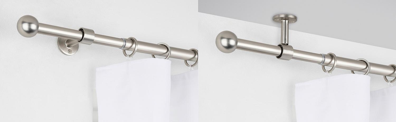 Die 2in1 Teleskopgarnitur BALL in Edelstahlfarben von mydeco kombiniert modernes Design mit praktischer Flexibilität. Dank der stufenlos verstellbaren Länge von 210 bis 400 cm eignet sie sich ideal für verschiedene Fenstergrößen. Mit einem Rohrdurchmesser von 1,6 bis 1,9 cm bietet die Stange eine stabile Basis für leichte bis mittelschwere Vorhänge. Die einfache Montage macht sie zur perfekten Lösung für stilvolles und funktionales Wohnen.