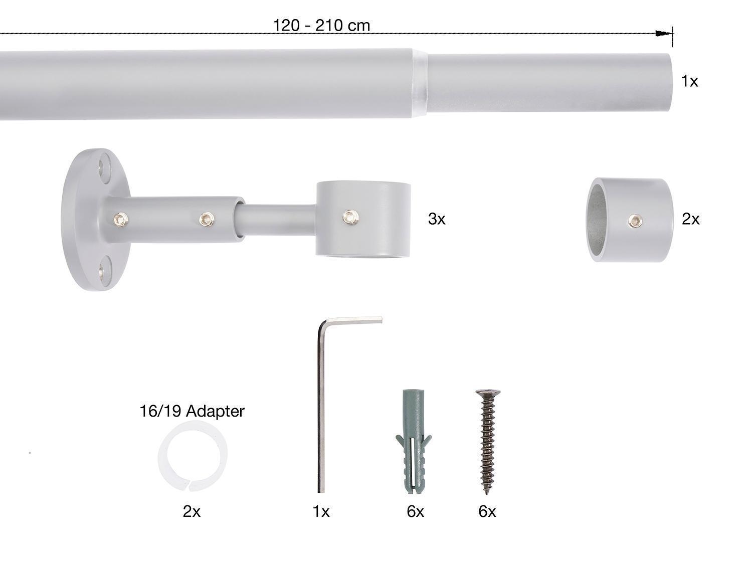 Die 2in1 Teleskopstange CAP in Grau von mydeco kombiniert modernes Design mit praktischer Flexibilität. Dank der stufenlos verstellbaren Länge von 120 bis 210 cm eignet sie sich ideal für verschiedene Fenstergrößen. Mit einem Rohrdurchmesser von 1,6 bis 1,9 cm bietet die Stange eine stabile Basis für leichte bis mittelschwere Vorhänge. Die einfache Montage macht sie zur perfekten Lösung für stilvolles und funktionales Wohnen.