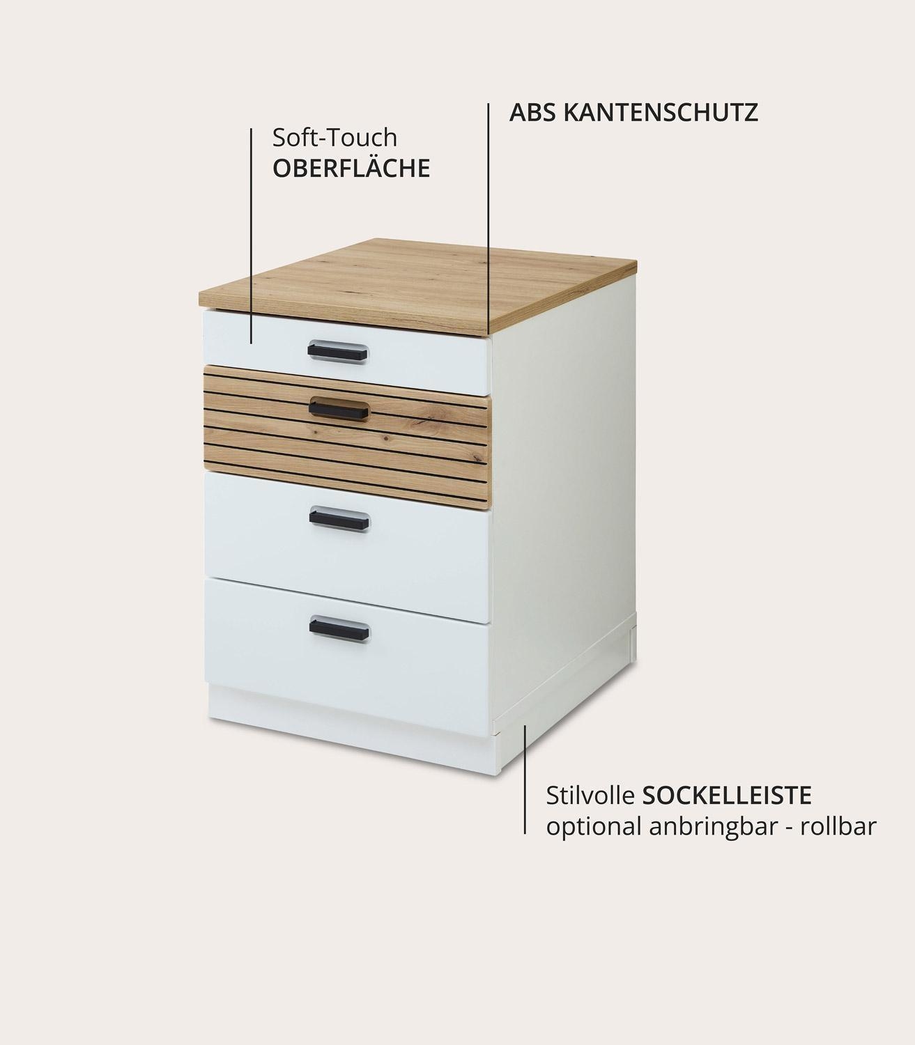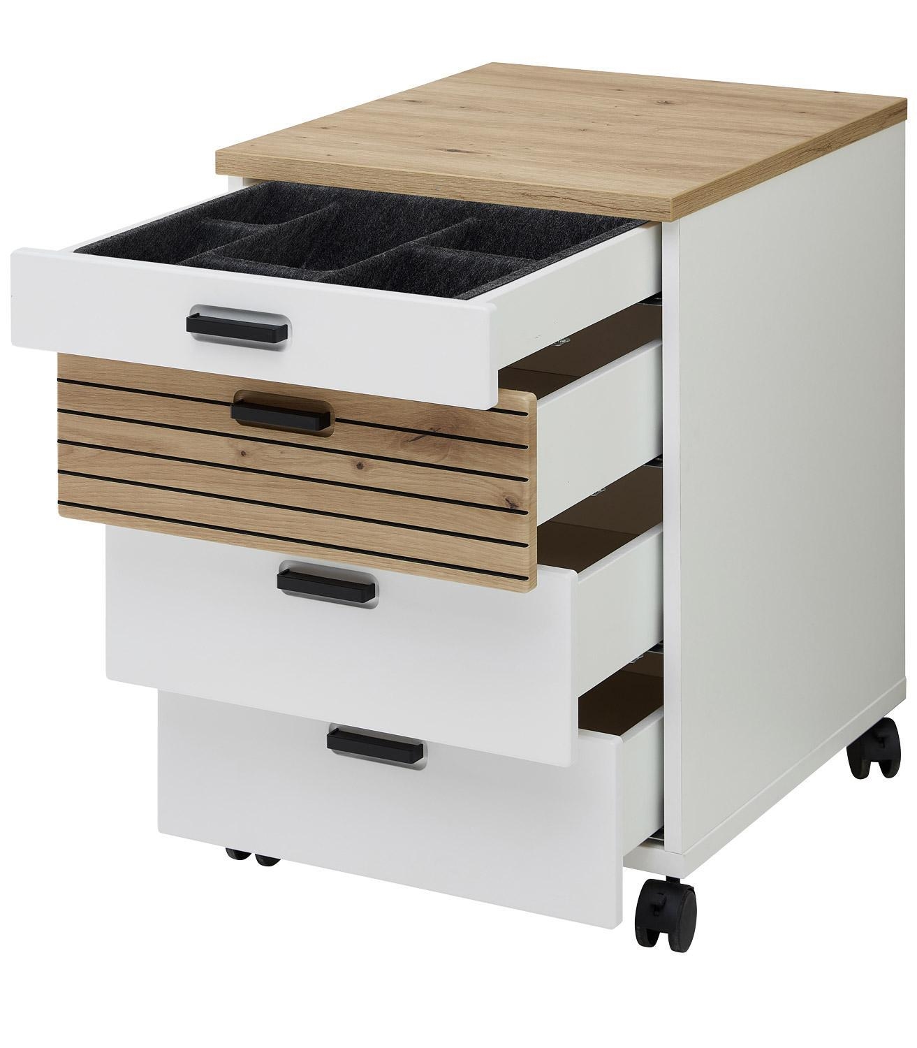 B 45 cm - 3 Schubladen - Artisan Eiche Dekor - Weiß
