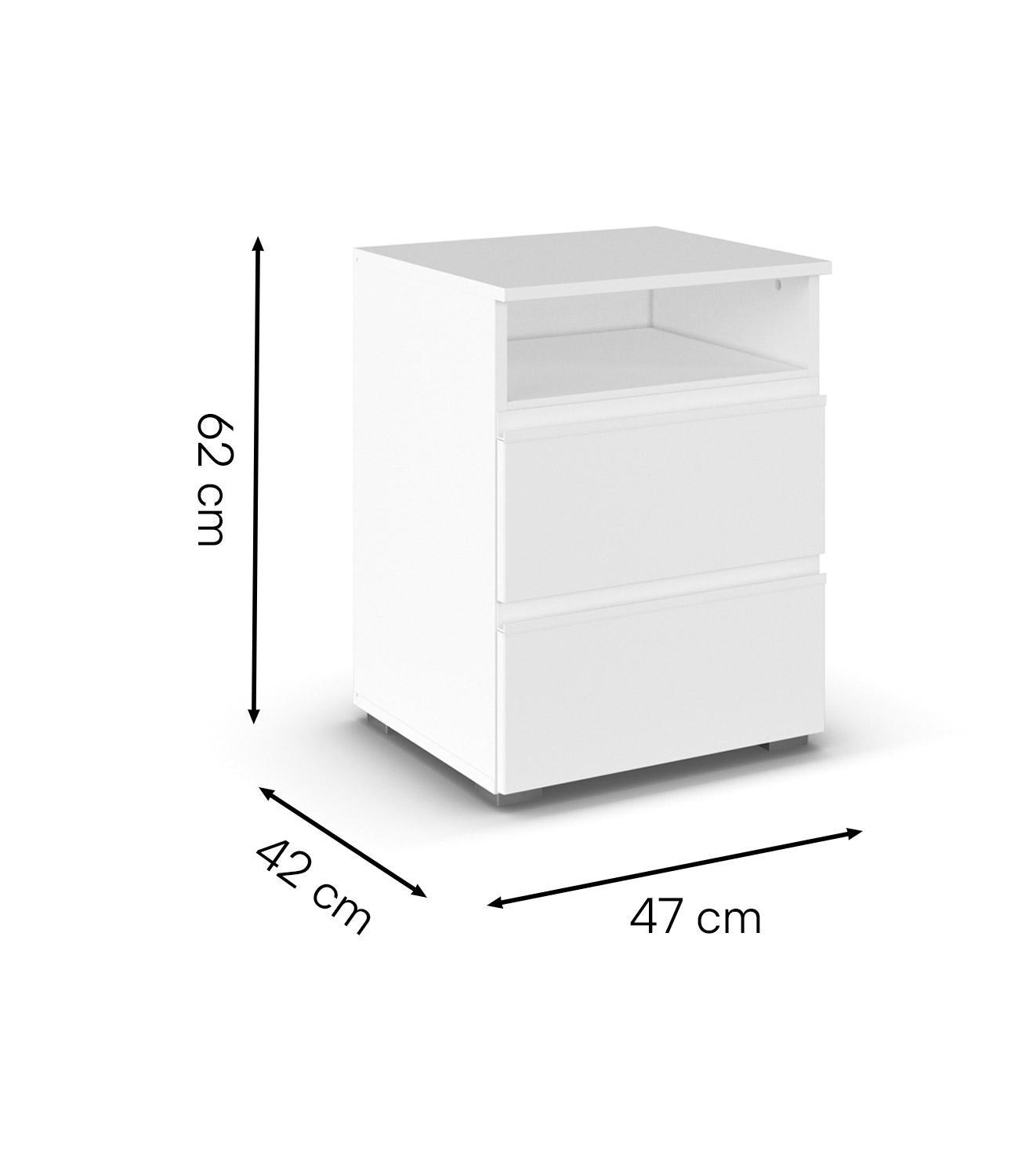 B 47 cm - 2 Schubladen - 1 offenes Fach - Alpinweiß
