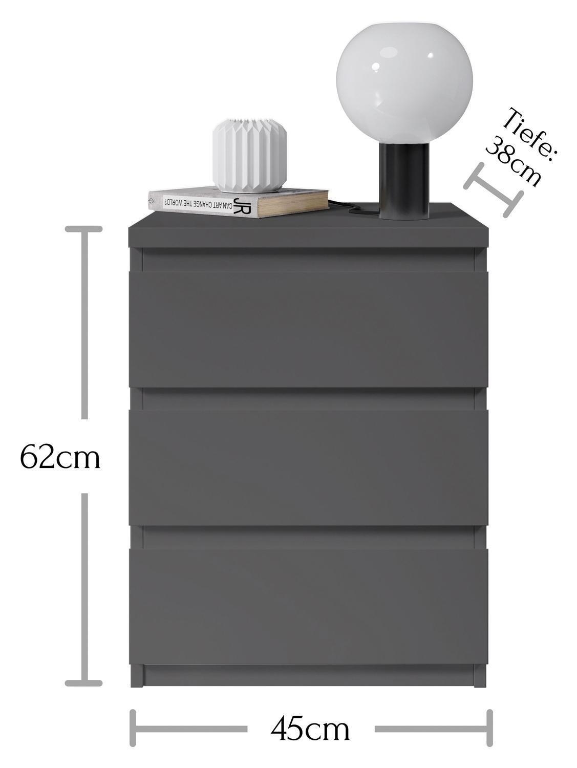 Graphit Dekor matt - B 45 cm - 3 Schubladen