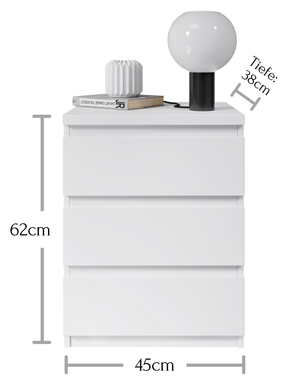 | Lieferumfang: | 1 Nachttisch mit 3 Schubladen |