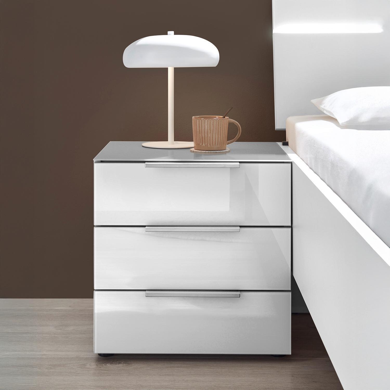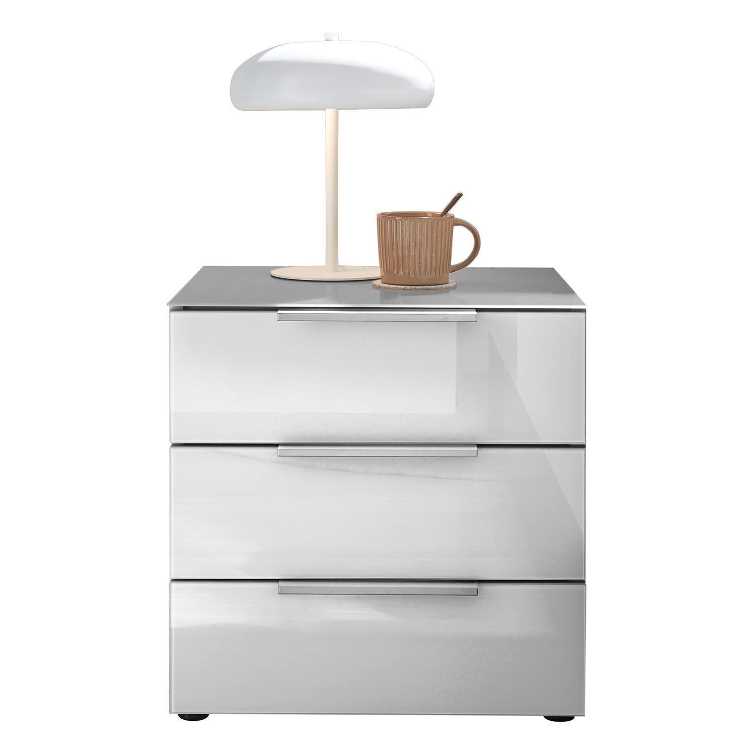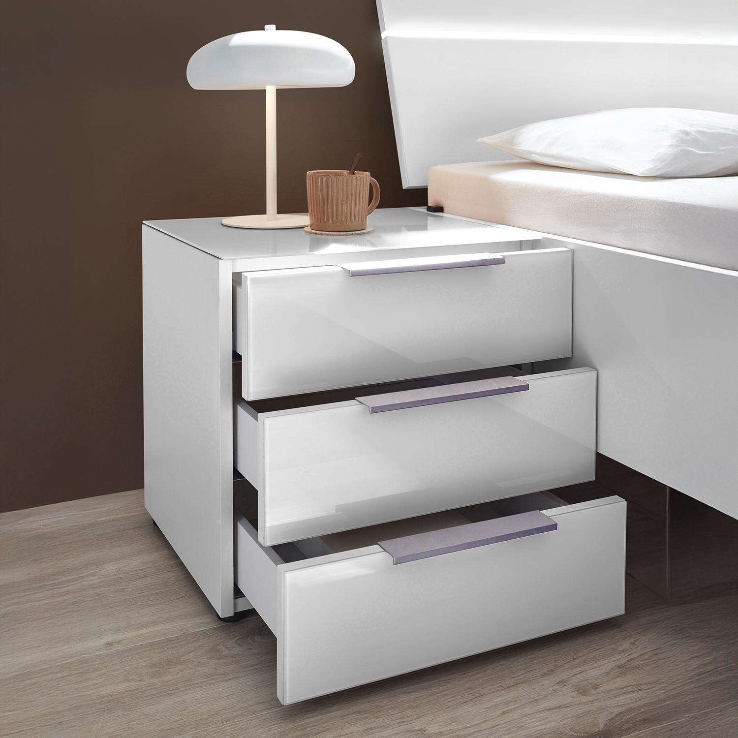 B 45 cm - 3 Schubladen - Weiß matt - Weißglas