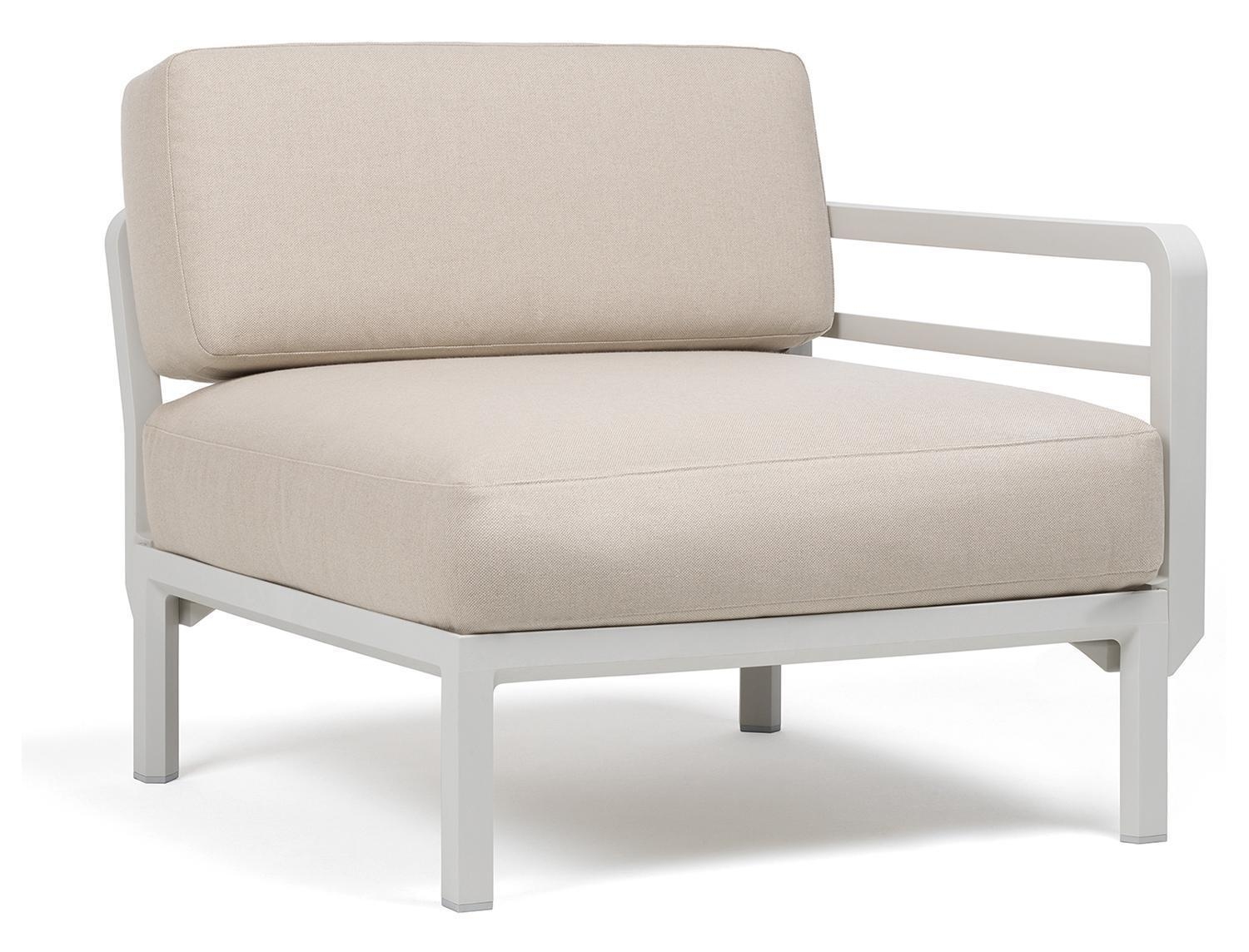 Das Gartenlounge-Abschlusselement MAXIMO der Marke Nardi verfügt über ein Gestell aus glasfaserverstärktem Polypropylen in der Farbe Weiß. Die Sitz- und Rückenkissen sind aus Sunbrella-Gewebe gefertigt und in Beige gehalten. Das Abschlusselement eignet sich mit seiner Armlehne für den Einsatz im Garten, auf der Terrasse oder dem Balkon.