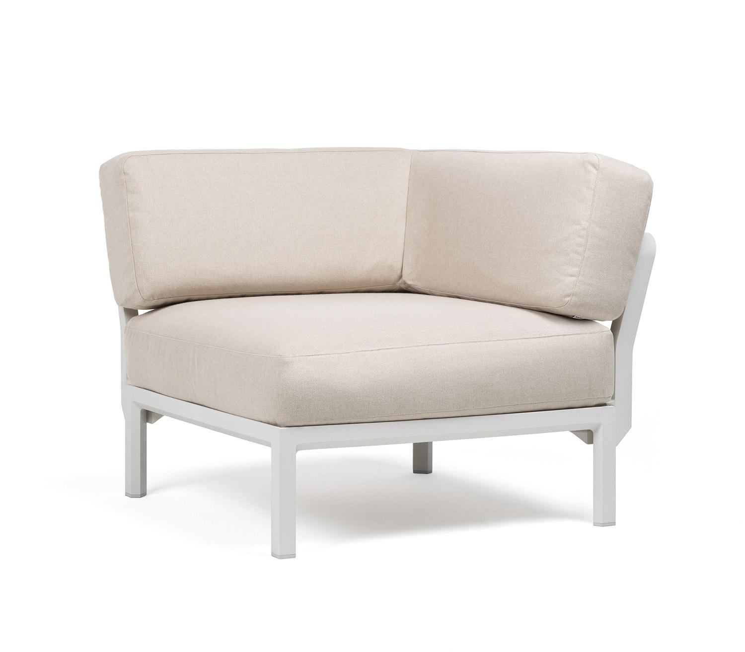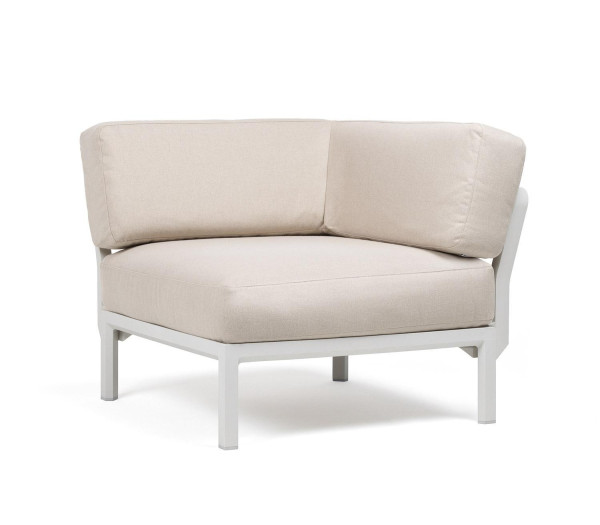 Das Gartenlounge-Eckelement MAXIMO der Marke Nardi verfügt über ein Gestell aus glasfaserverstärktem Polypropylen in der Farbe Weiß. Die Sitz- und Rückenkissen sind aus Sunbrella-Gewebe gefertigt und in Beige gehalten. Das Eckelement eignet sich für den Einsatz im Garten, auf der Terrasse oder dem Balkon.