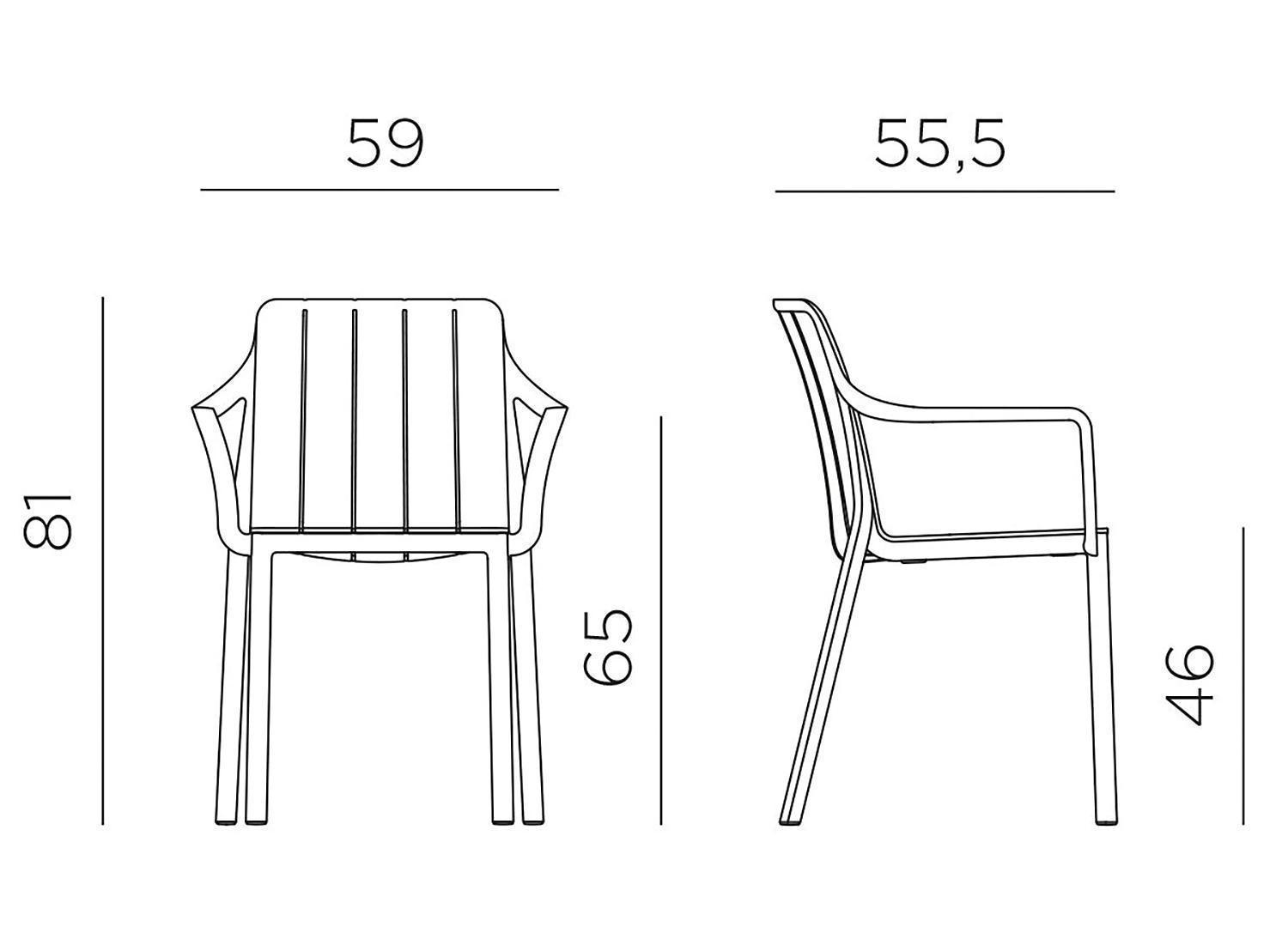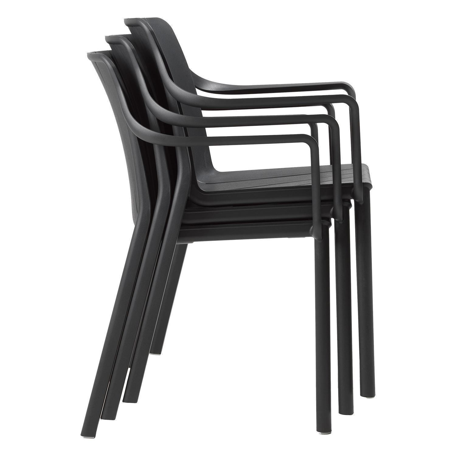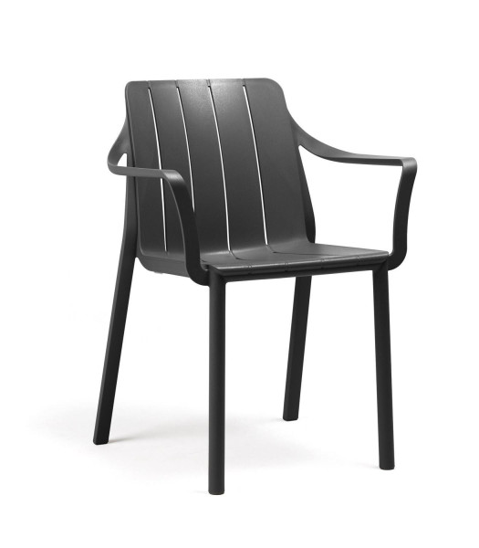 Der Gartenstuhl TIBERINA der Marke Nardi besteht aus glasfaserverstärktem Polypropylen in Anthrazit mit Matt-Effekt. Er ist mit Armlehnen und rutschfesten Fußkappen ausgestattet. Der Stuhl ist platzsparend stapelbar. Die Maße betragen 59 cm in der Breite, 81 cm in der Höhe und 56 cm in der Tiefe.