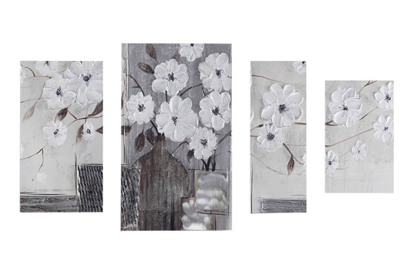 Grau - Weiß - 124 x 70 cm - Blumen - 4-teilig