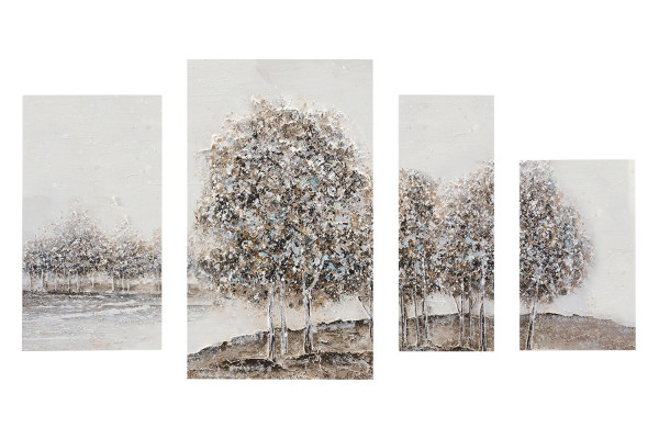 Braun - Weiß - 124 x 70 cm - Bäume - 4-teilig