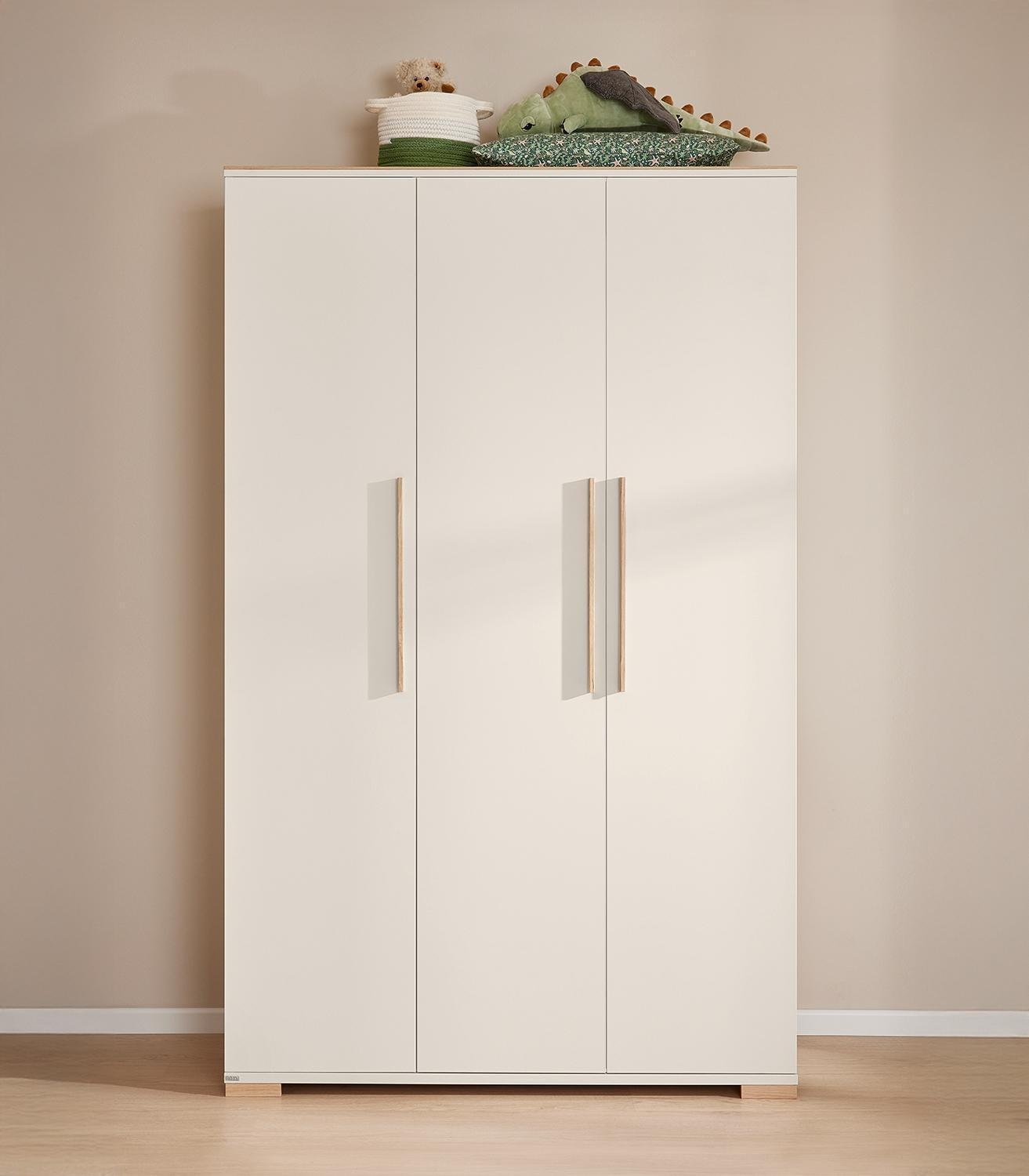 | Lieferumfang: | 1 Kleiderschrank mit 3 Türen, 1 Schublade, 1 Kleiderstange und 5 höhenverstellbaren Einlegeböden |