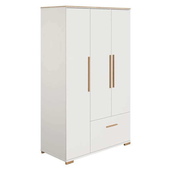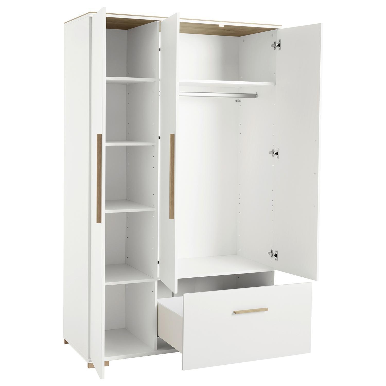 124 x 200 cm - 3 Türen - 1 Schublade - Montana Eiche Dekor - Weiß