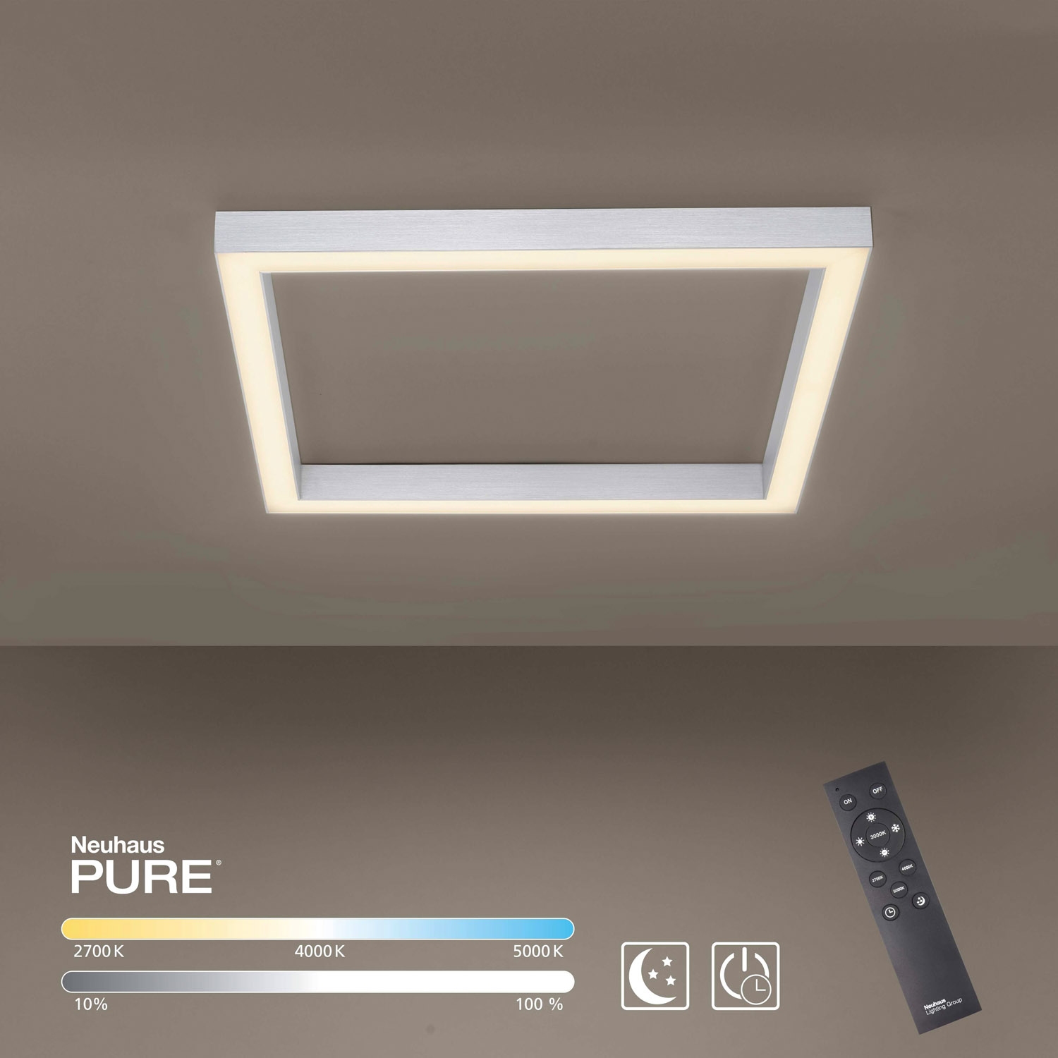 | Lieferumfang: | 1 LED-Deckenleuchte mit integrierten Leuchtmitteln und Fernbedienung |