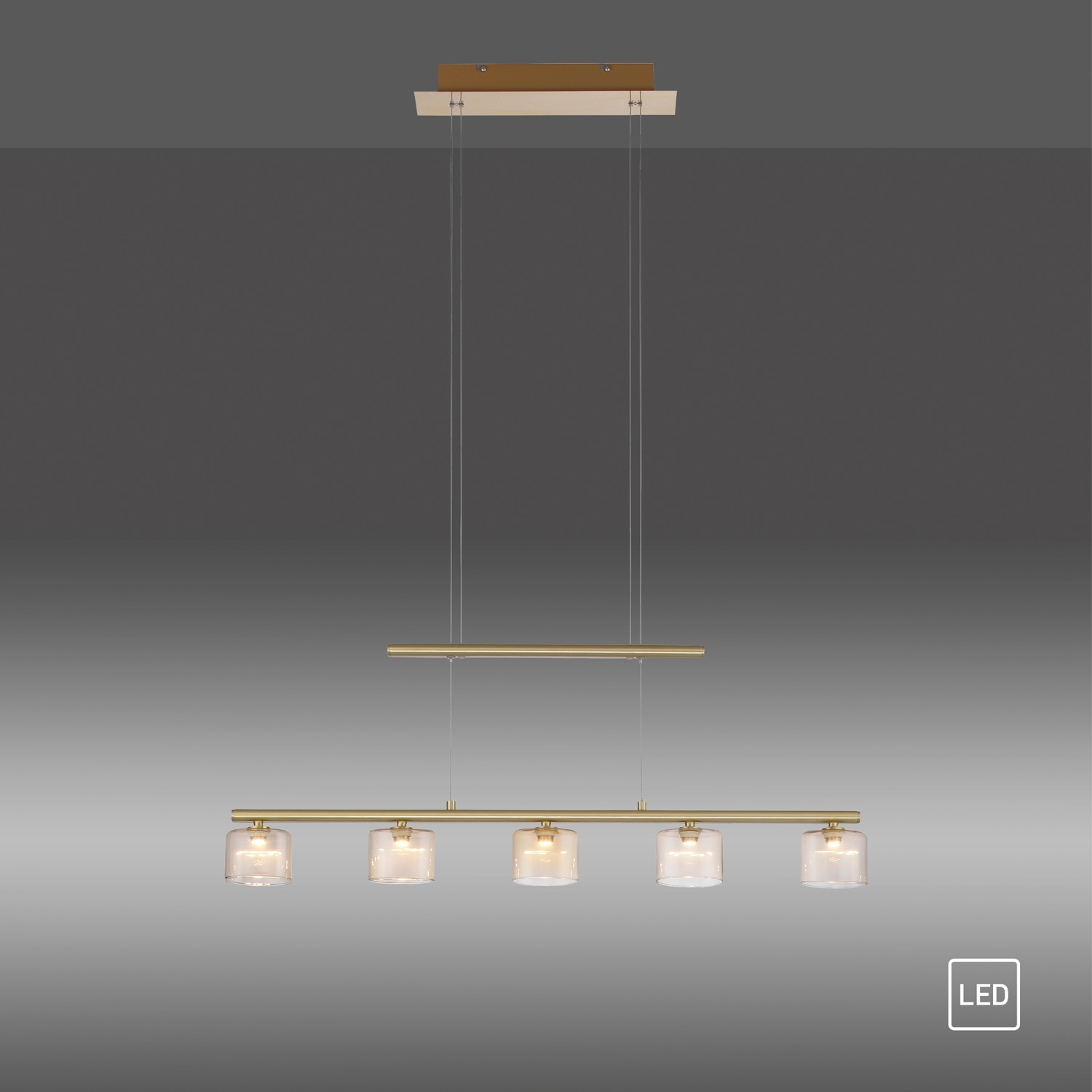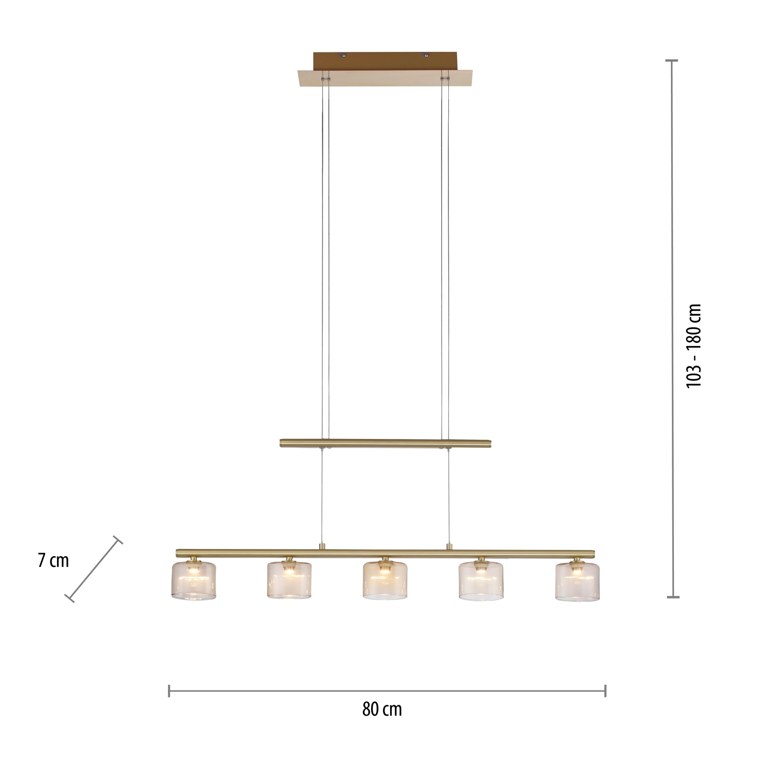 | Lieferumfang: | 1 höhenverstellbare LED-Pendelleuchte mit 5 integrierten Leuchtmitteln |