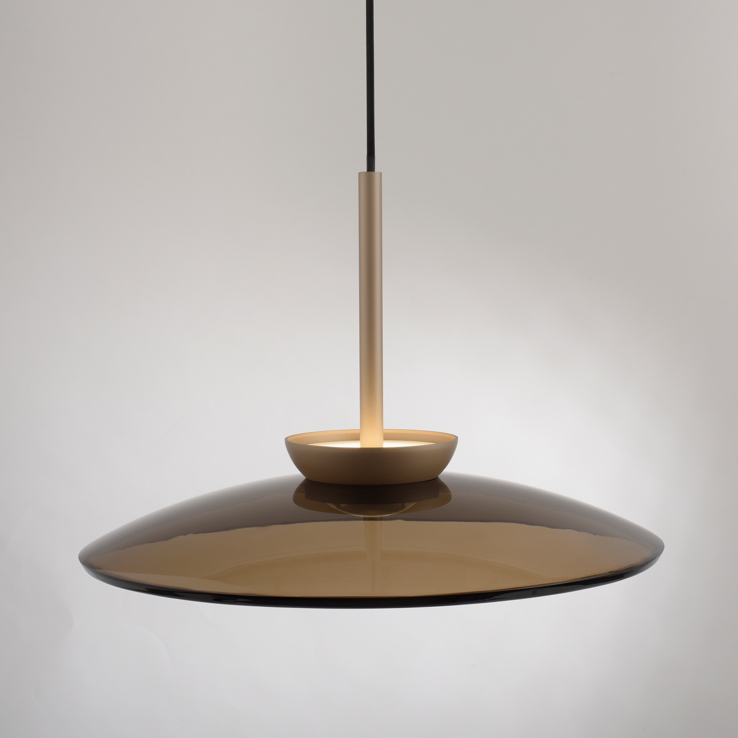 - LED-Pendelleuchte aus Metall in bronzefarben