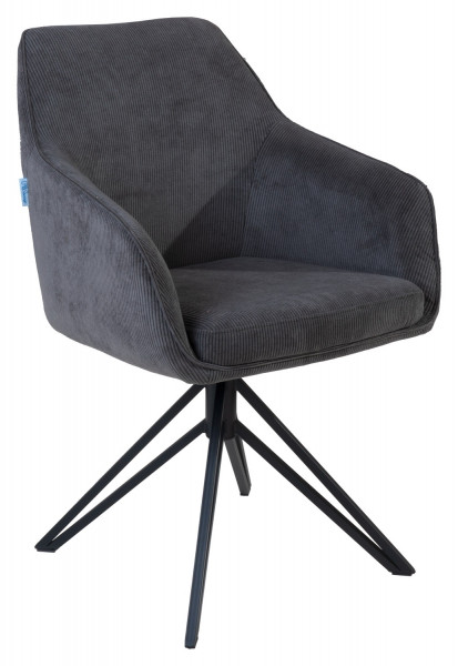 Der Polsterstuhl ist in Anthrazit und Schwarz erhältlich. Er verfügt über einen Cordbezug aus 100% Polyester und ein Metallgestell in Schwarz. Mit einer Breite von 60 cm, einer Höhe von 84 cm und einer Tiefe von 62 cm bietet er ausreichend Platz und Komfort. Die Sitzbreite beträgt 41 cm, die Sitzhöhe 50 cm und die Sitztiefe 44 cm. Der Stuhl ist 180 Grad drehbar und verfügt über eine Rückstellmechanik. Zusätzlich ist er mit Armlehnen ausgestattet. Mit der automatischen Rückholfunktion wird die Sitzschale nach dem Drehen wieder in die ursprüngliche Sitzposition zurück geführt.