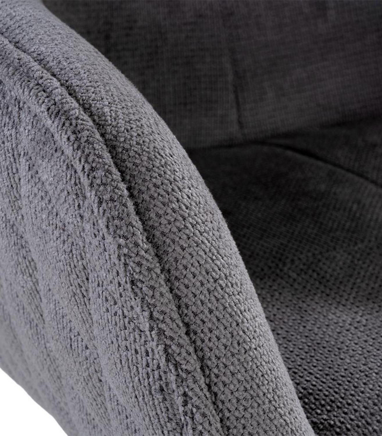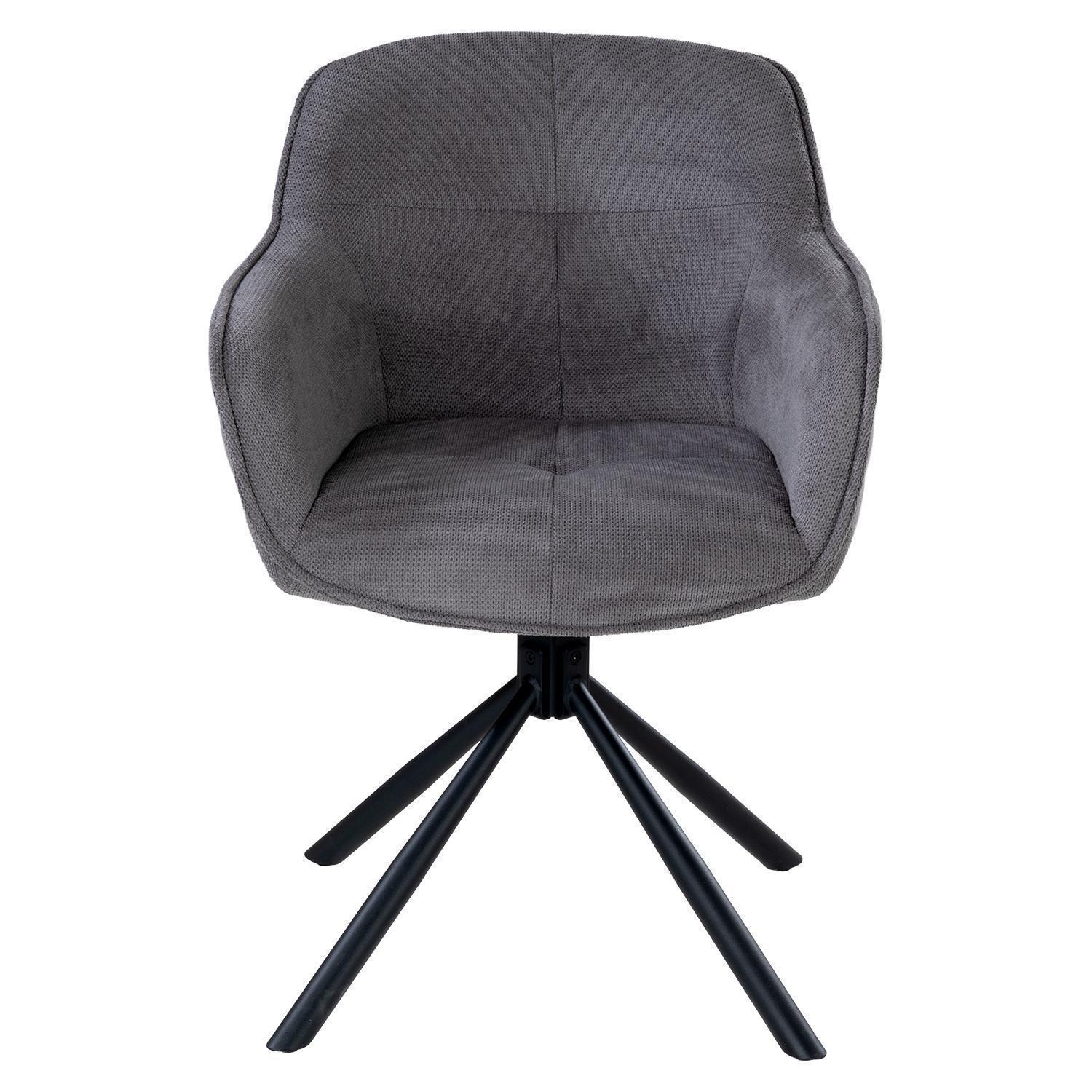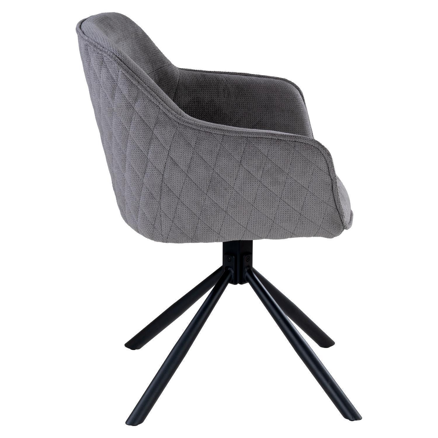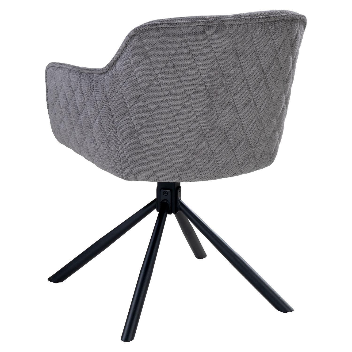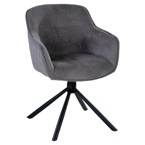 Der Polsterstuhl ERWIN ist mit einem grauen Webstoffbezug ausgestattet. Das Gestell besteht aus schwarzem Metall und bietet eine stabile Basis. Der Außenbezug ist mit Diamantsteppungen versehen, die dem Stuhl eine strukturierte Oberfläche verleihen. Die Sitzschale ist um 180 Grad drehbar und verfügt über eine automatische Rückholfunktion. Die maximale Belastbarkeit beträgt 120 kg. Die Abmessungen des Stuhls betragen 59 cm in der Breite, 82 cm in der Höhe und 62 cm in der Tiefe.
