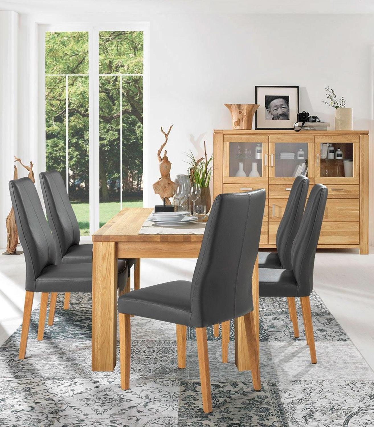 Grau - Spaltlederbezug - Eichenholzgestell