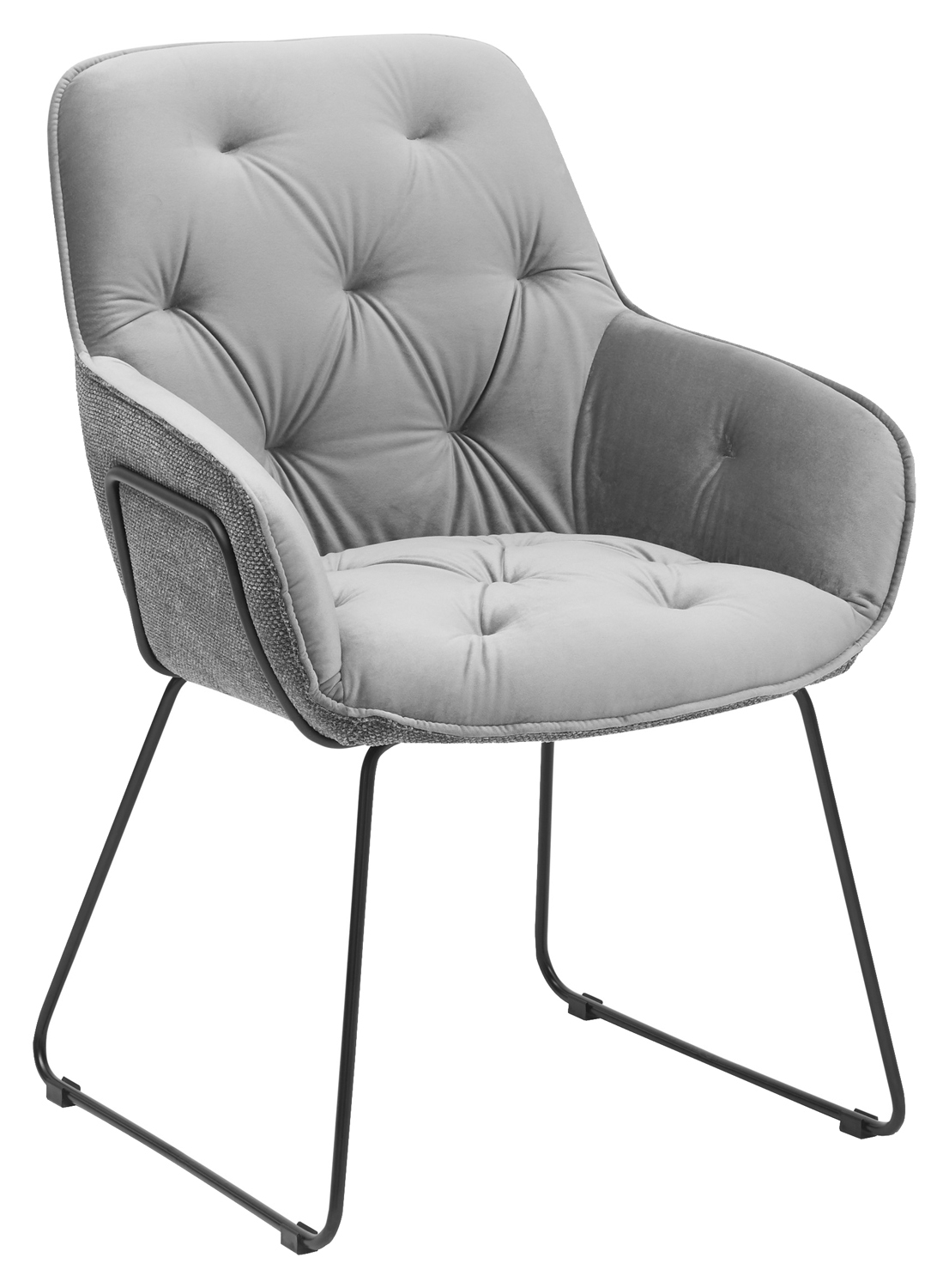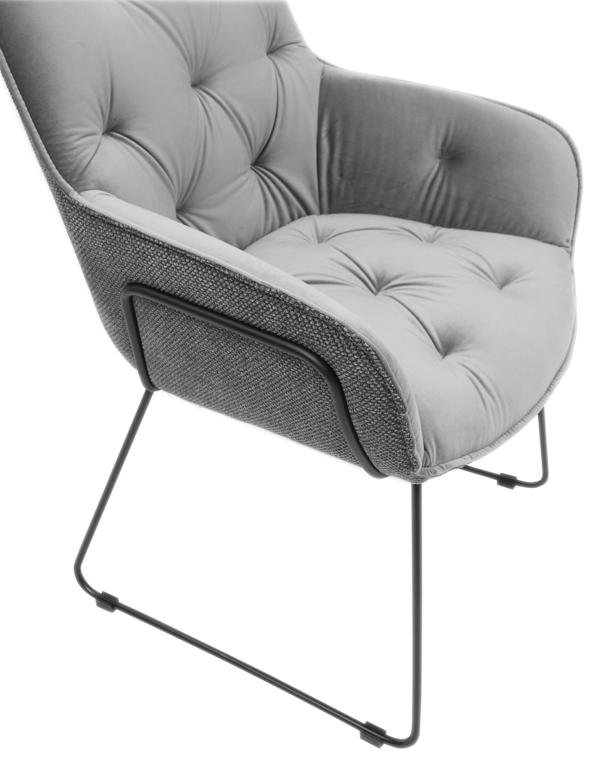 Hellgrau - Schwarz - Polyesterbezug - Metallgestell - mit Armlehnen
