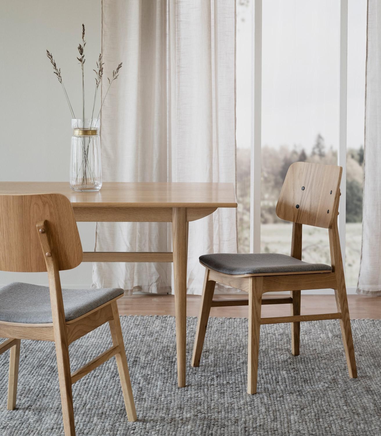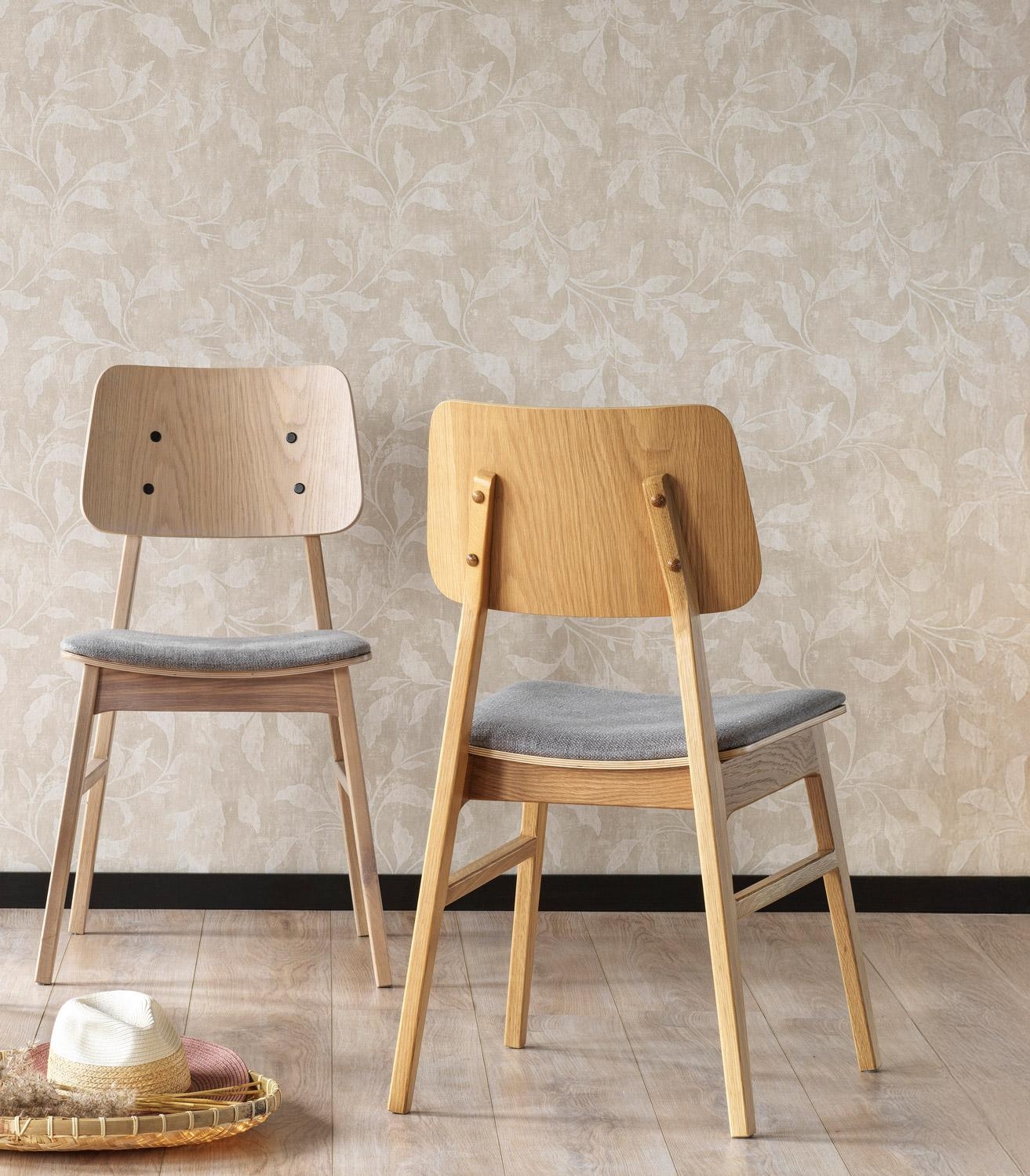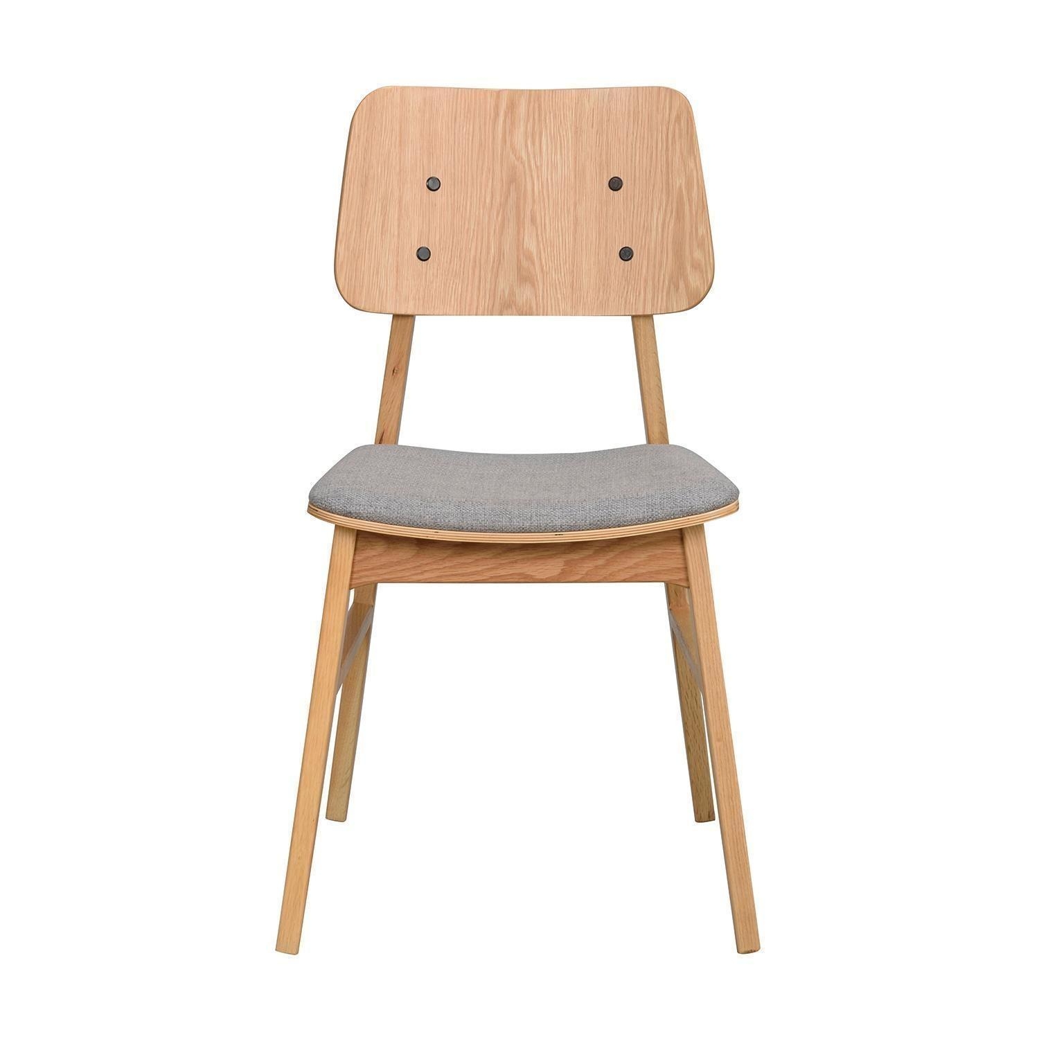 Der Polsterstuhl NAGANO besteht aus massivem Eichenholz und ist mit einem Sitzkissenbezug aus hellgrauem Stoff ausgestattet. Er verfügt über eine gebogene Rückenlehne und ist vielseitig einsetzbar in Küche, Ess- und Wohnzimmer. Die Breite beträgt 50 cm, die Höhe 85 cm und die Tiefe 51 cm. Die Sitzhöhe liegt bei 46 cm.