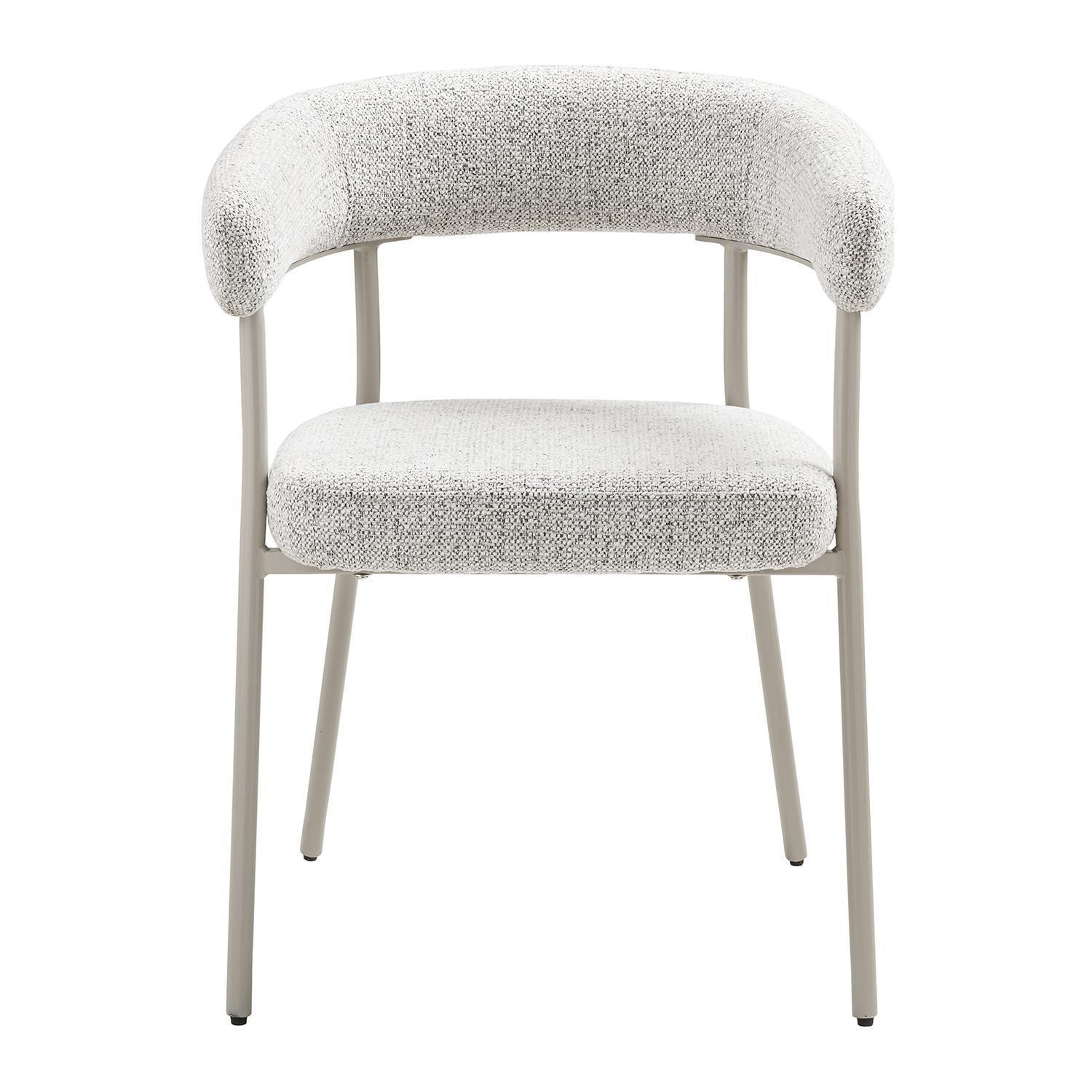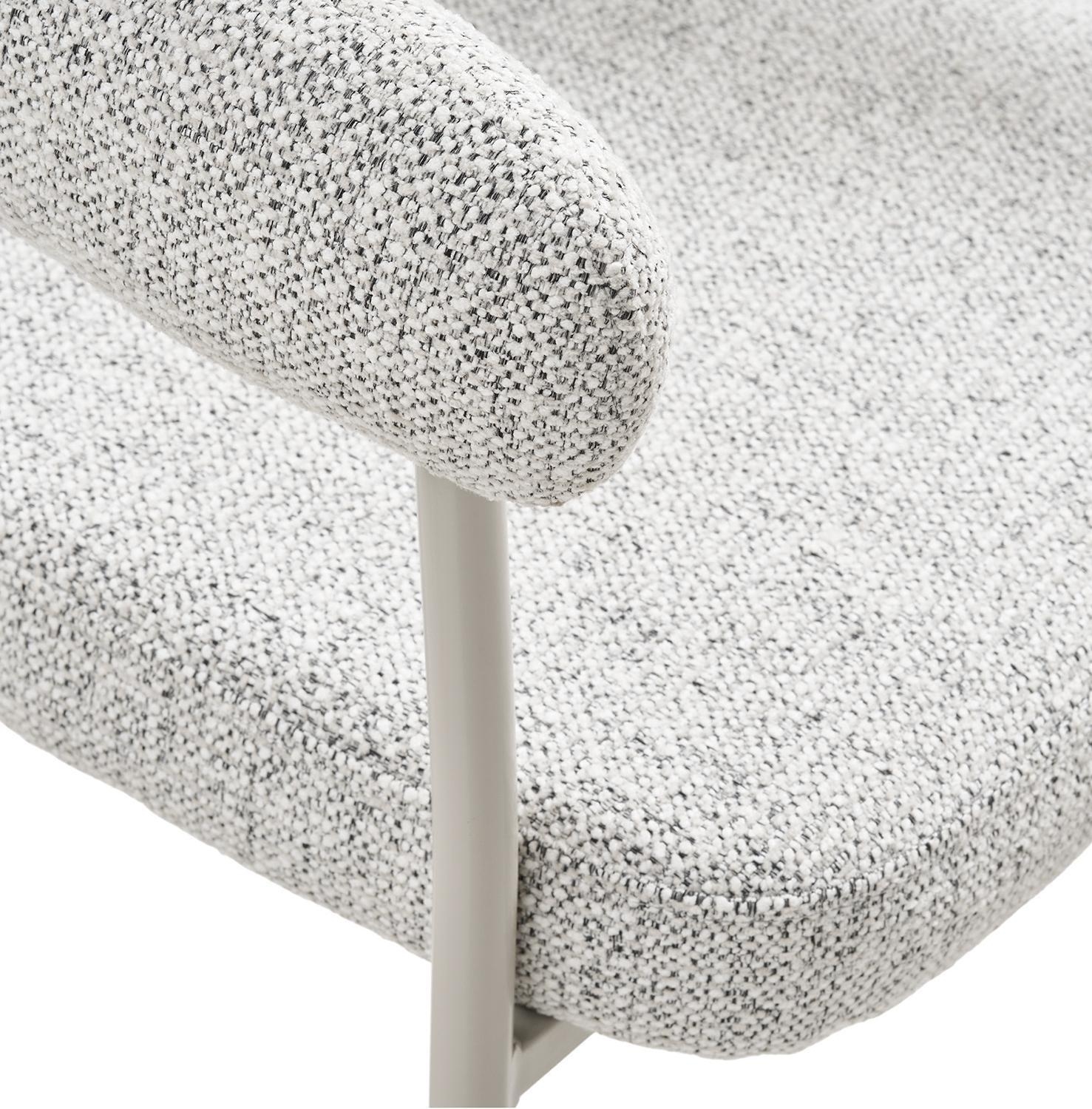 Der Polsterstuhl TJARNE ist mit einem Stoffbezug in Sandgrau versehen. Das Gestell besteht aus grauem Stahl und sorgt für Stabilität. Der Stuhl verfügt über gepolsterte Armlehnen und bietet eine Sitzhöhe von 49 cm. Er eignet sich für den Einsatz in Esszimmer, Küche und Wohnzimmer. Die Breite beträgt 58 cm, die Höhe 77 cm und die Tiefe 56 cm.