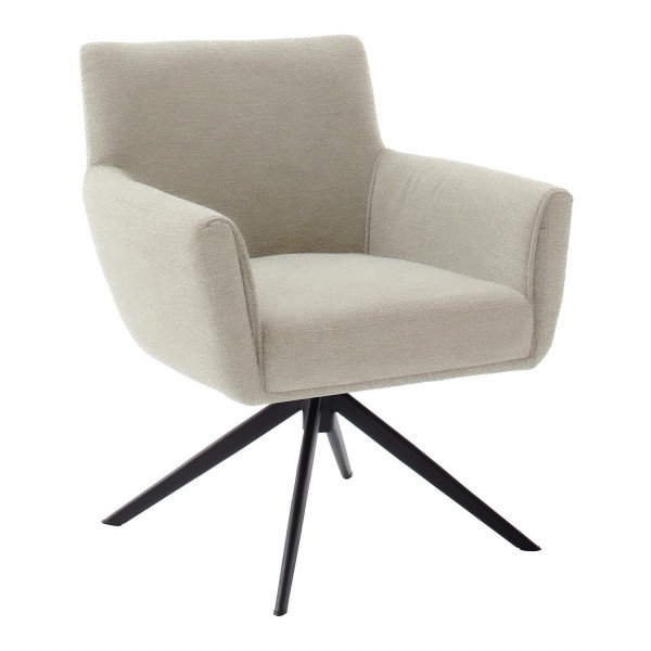 Der Polsterstuhl WESTHAM XL der Marke MCA furniture ist mit einem cremefarbenen Bezug aus Flachgewebe bezogen. Das aus schwarzem Metall gefertigte Gestell ist für eine maximale Belastung von 160 kg ausgelegt. In der Sitzfläche ist eine Taschenfederkernpolsterung integriert, zudem lässt sich das Möbelstück um 360 Grad drehen. Die Abmessungen betragen 72 cm in der Breite, 71 cm in der Tiefe sowie 88 cm in der Höhe. Dabei beläuft sich die Sitzhöhe auf 51 cm, während die Sitztiefe 50 cm umfasst.