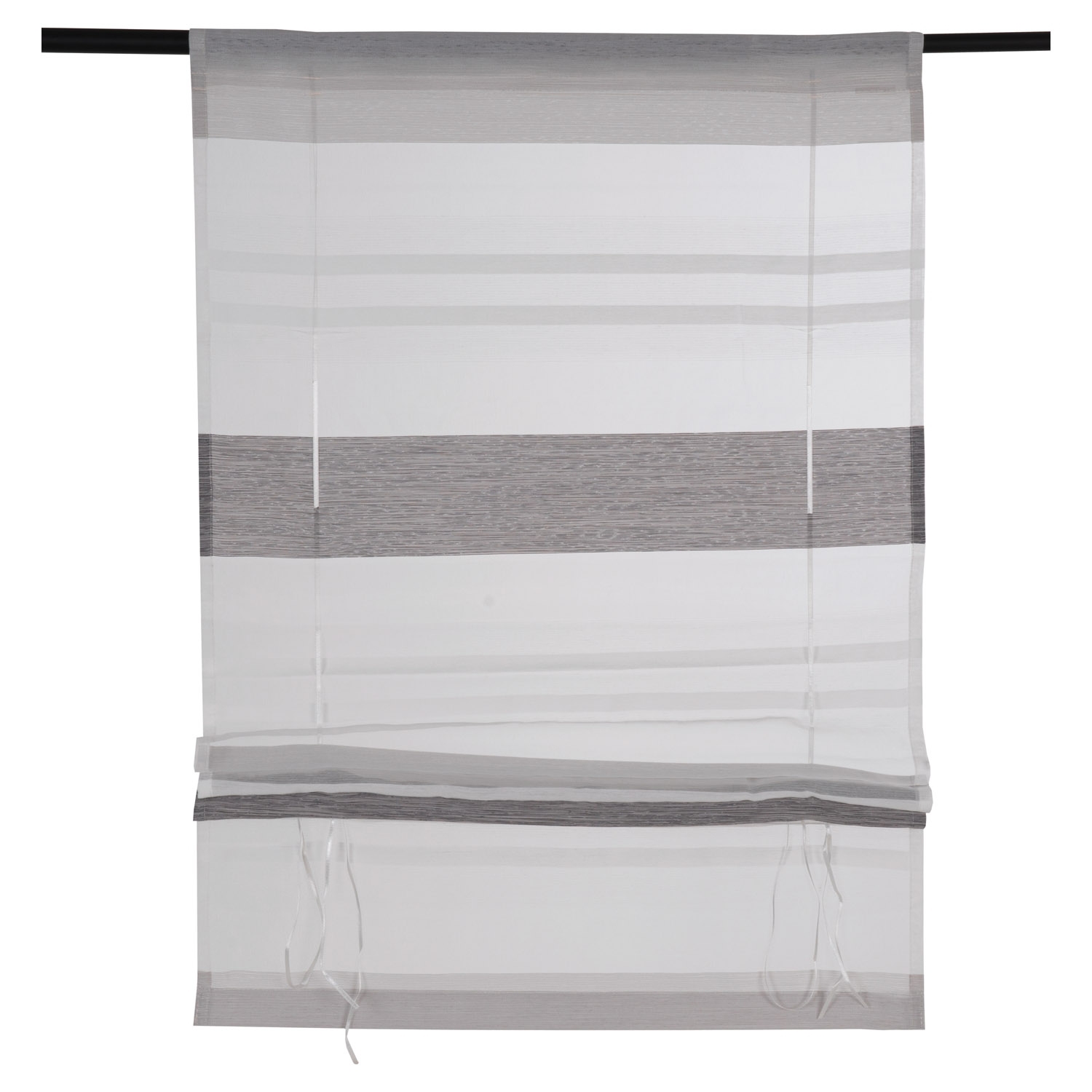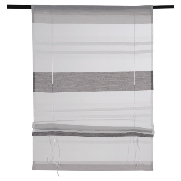 Der Raffrollo KIRA in Weiß mit stilvollen Querstreifen in Stahlgrau bringt Eleganz und Leichtigkeit in helle Räume. Er bietet Schutz vor blendenden Sonnenstrahlen, während es gleichzeitig genügend Licht durchlässt. Das transparente Material sorgt für eine angenehme Atmosphäre. Mit einer Breite von 60 cm und einer Länge von 130 cm ist es ideal für Fenster unterschiedlicher Größen geeignet.