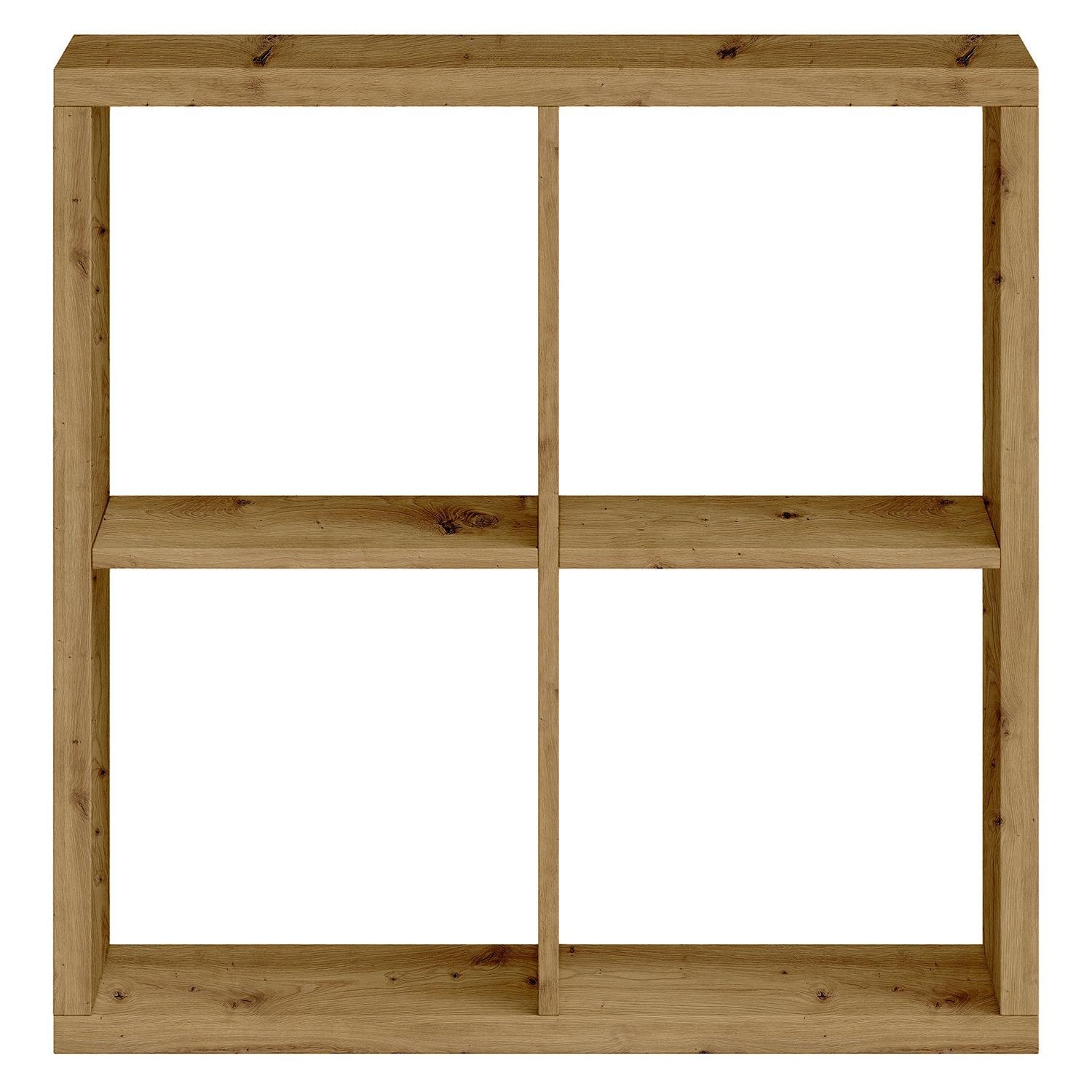 Der Raumteiler SONJA ist in einem Artisan Eiche Dekor gehalten. Er verfügt über vier offene Ablagefächer, die zur Aufbewahrung von Büchern, Dekorationsgegenständen oder Pflanzen genutzt werden können. Der Raumteiler kann wahlweise stehend oder wandhängend montiert werden. Die Maße betragen 77 cm in der Breite, 77 cm in der Höhe und 38 cm in der Tiefe.