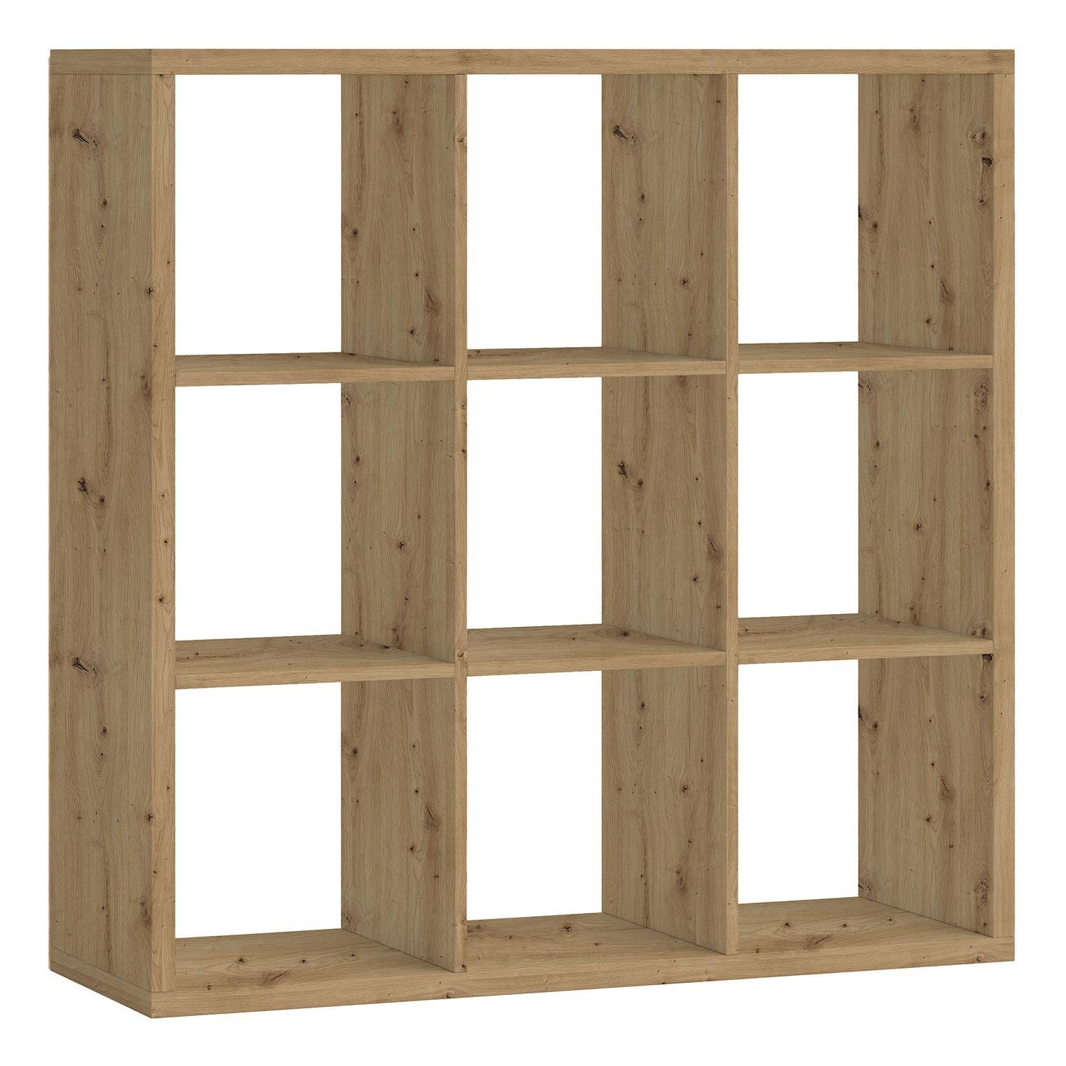 Der Raumteiler SONJA ist in einem Artisan Eiche Dekor gehalten. Er verfügt über neun offene Ablagefächer, die zur Aufbewahrung von Büchern, Dekorationsgegenständen oder Pflanzen genutzt werden können. Der Raumteiler kann wahlweise stehend oder wandhängend montiert werden. Die Maße betragen 112 cm in der Breite, 122 cm in der Höhe und 38 cm in der Tiefe.