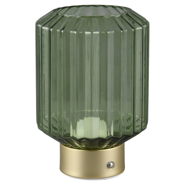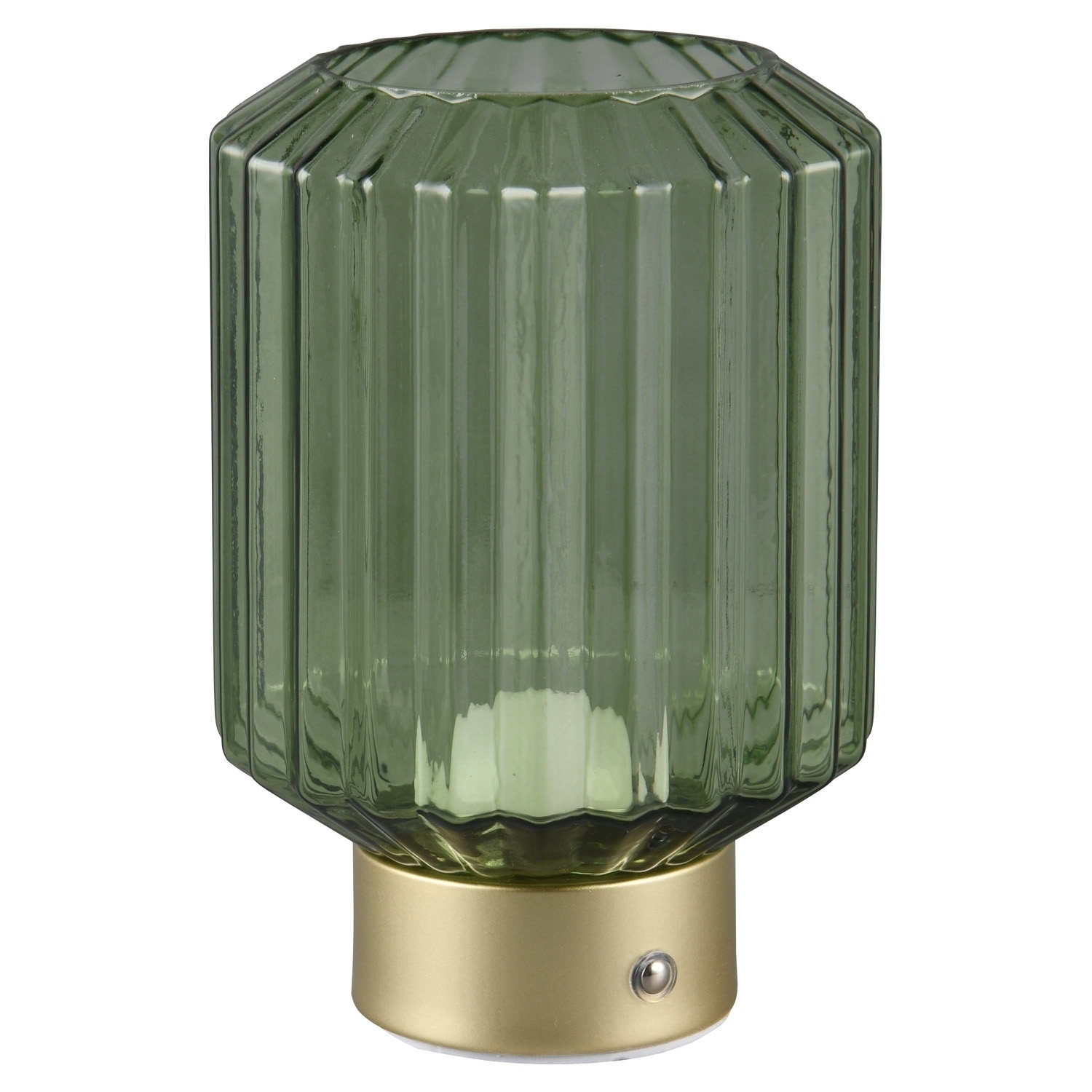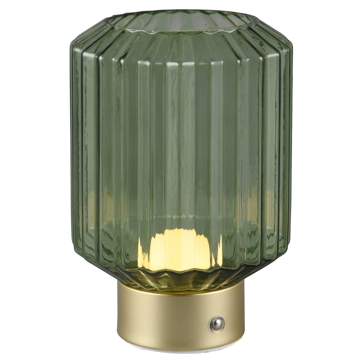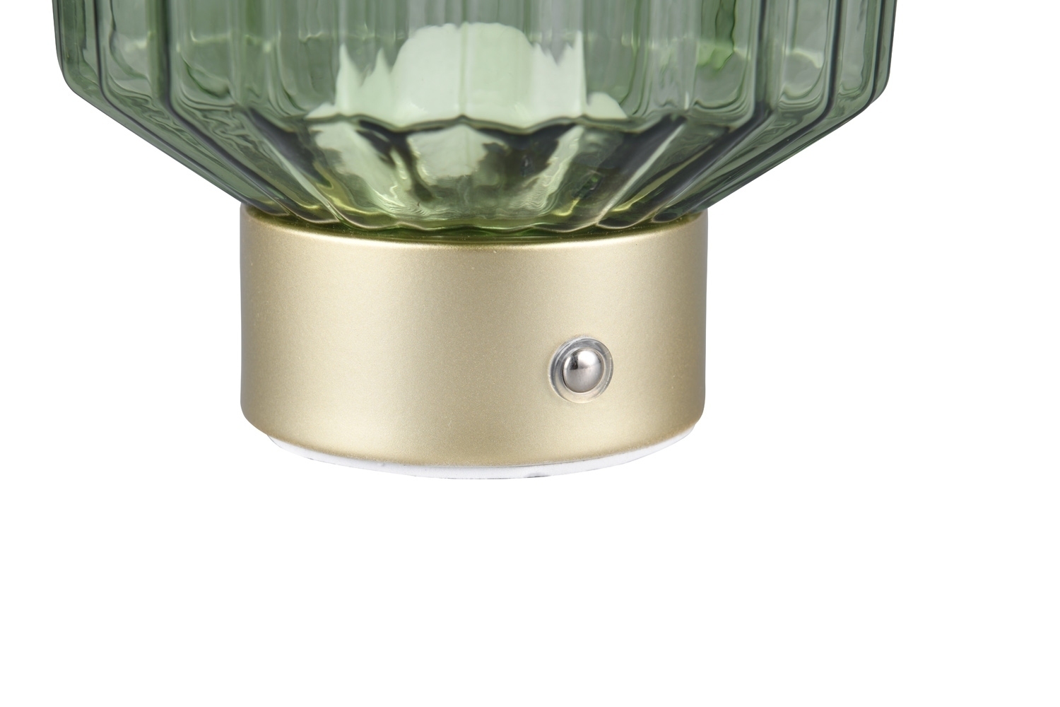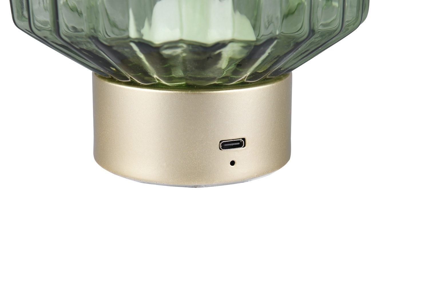 Die Akku LED-Tischlampe LORD von Reality Leuchten kombiniert elegantes Design mit praktischer Funktionalität. Hergestellt aus Metall in messingfarben und einem Lampenschirm aus grünem Glas strahlt sie zeitlose Eleganz aus. Der wiederaufladbare Akku mit USB-Port und mitgeliefertem Kabel ermöglicht kabellose Beleuchtung und einfaches Aufladen. Die Lampe ist 4-fach dimmbar und verfügt über einen Touchsensor für bequeme Helligkeitsanpassungen. Mit einem Durchmesser von 13 cm und einer Höhe von 19 cm passt sie perfekt auf jeden Tisch oder Nachttisch. Das enthaltene LED-Leuchtmittel bietet eine Leistung von 1,5 Watt, eine warmweiße Farbtemperatur von 3000 Kelvin und eine Helligkeit von 100 Lumen, was für eine angenehme Beleuchtung sorgt. Ob im Wohnzimmer oder Schlafzimmer, die Tischleuchte ist eine stilvolle und praktische Lichtquelle für verschiedene Anlässe.