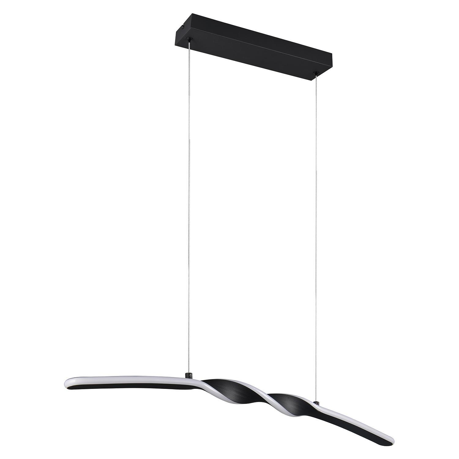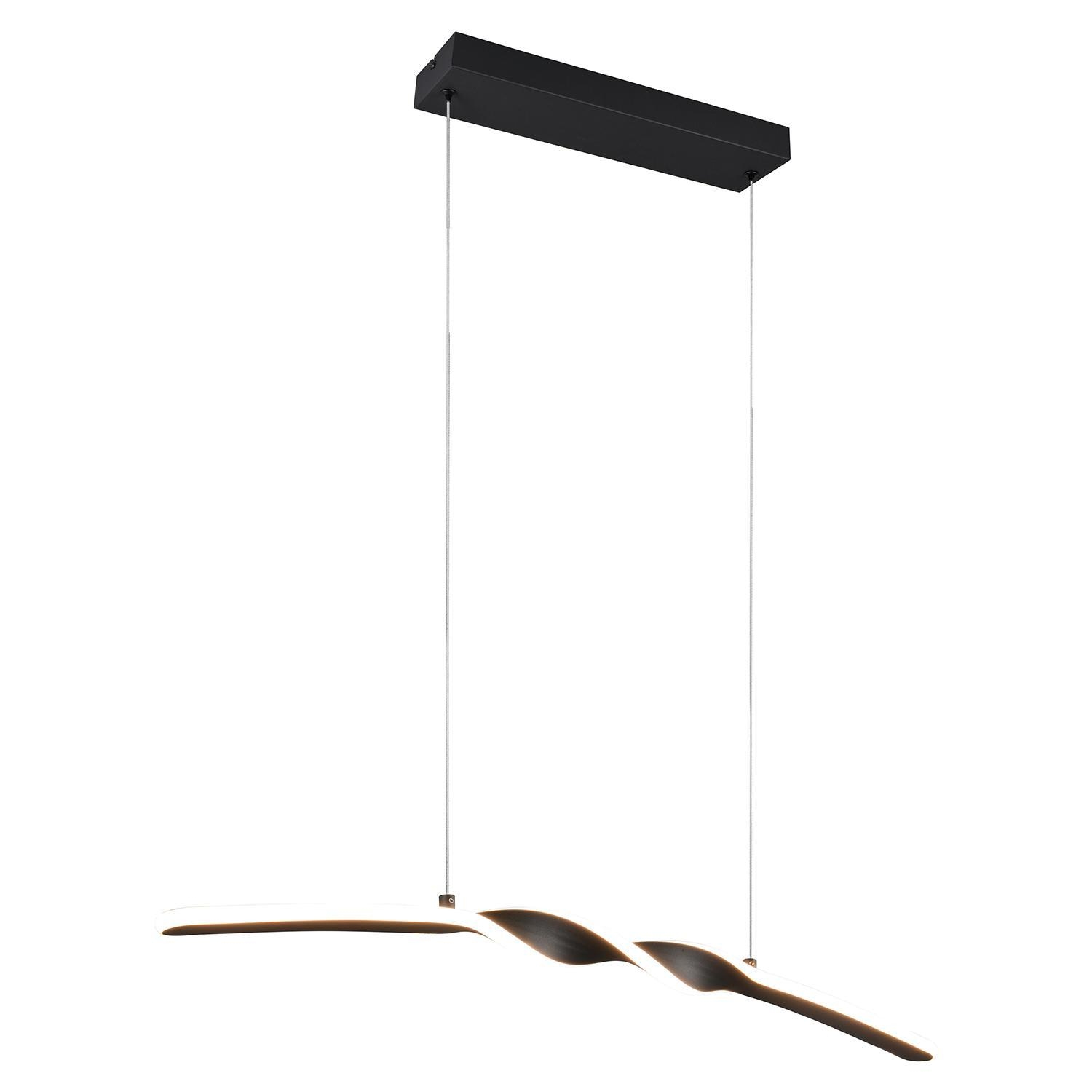 Die LED-Pendelleuchte GINKO von Reality Leuchten ist aus Metall in Schwarz gefertigt und lässt sich in der Höhe verstellen. Sie misst 79 cm in der Breite, 150 cm in der Höhe und 9 cm in der Tiefe. Die Leuchte ist mit einem fest verbauten LED-Leuchtmittel ausgestattet, das nicht austauschbar ist. Dieses erreicht eine Leistung von 18 Watt, erzeugt eine warmweiße Farbtemperatur von 3000 Kelvin und bietet eine Helligkeit von 1980 Lumen.