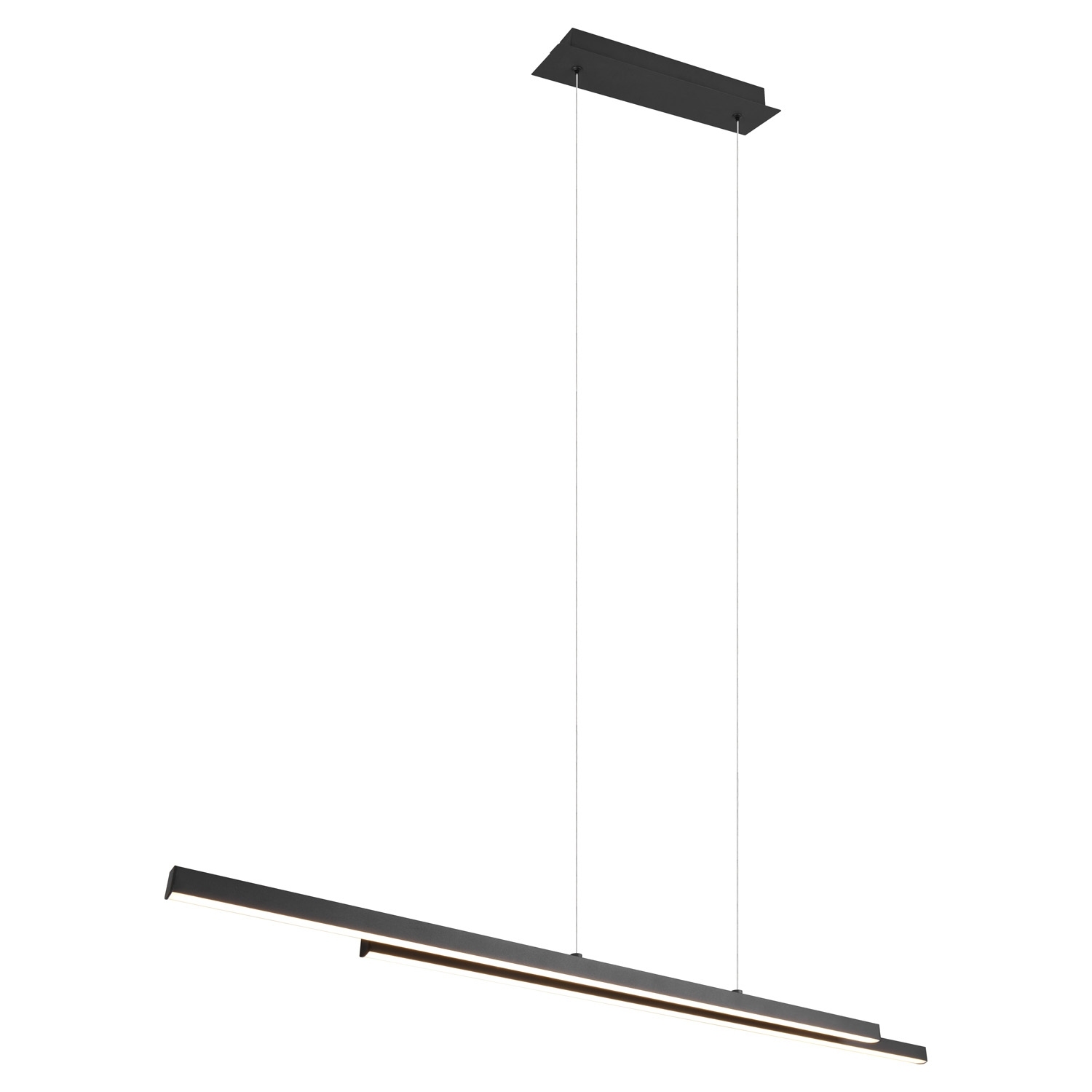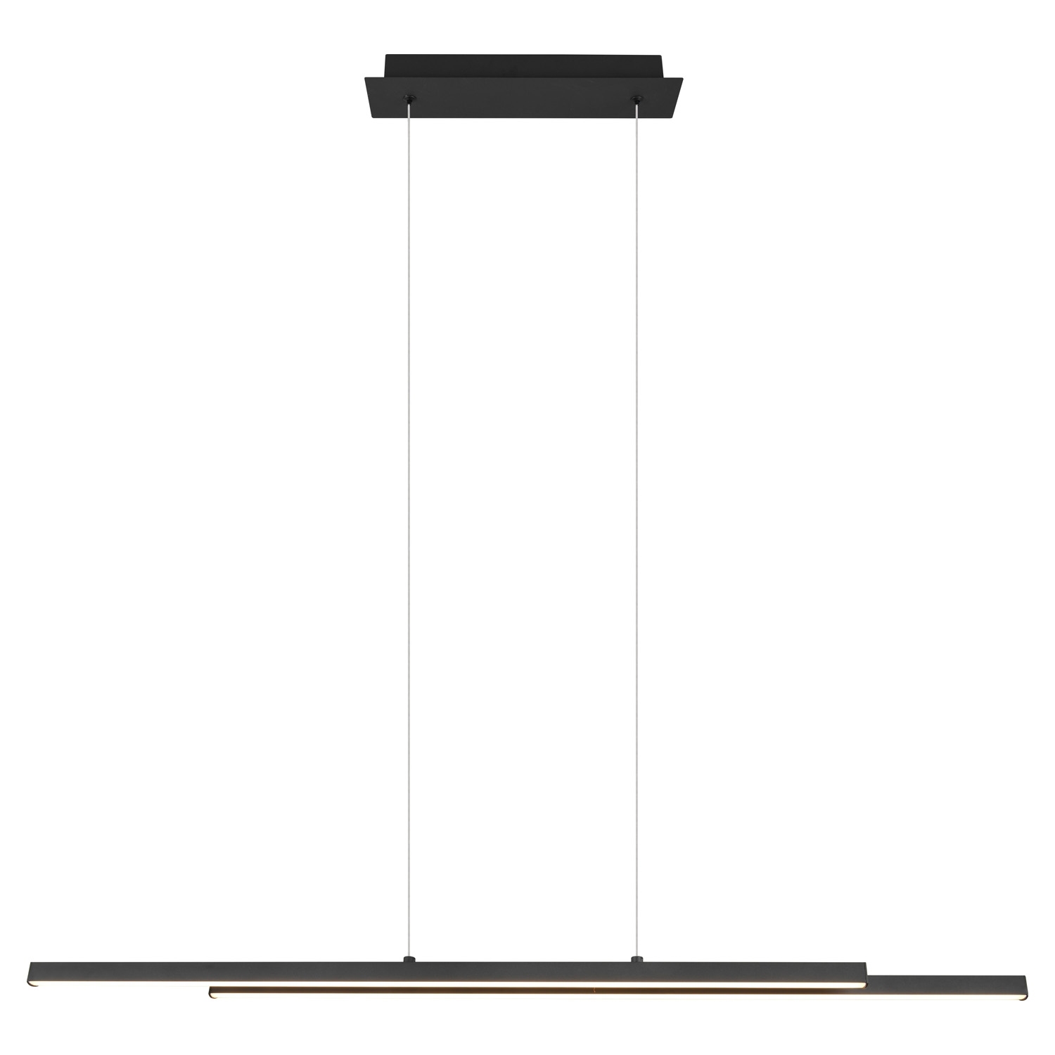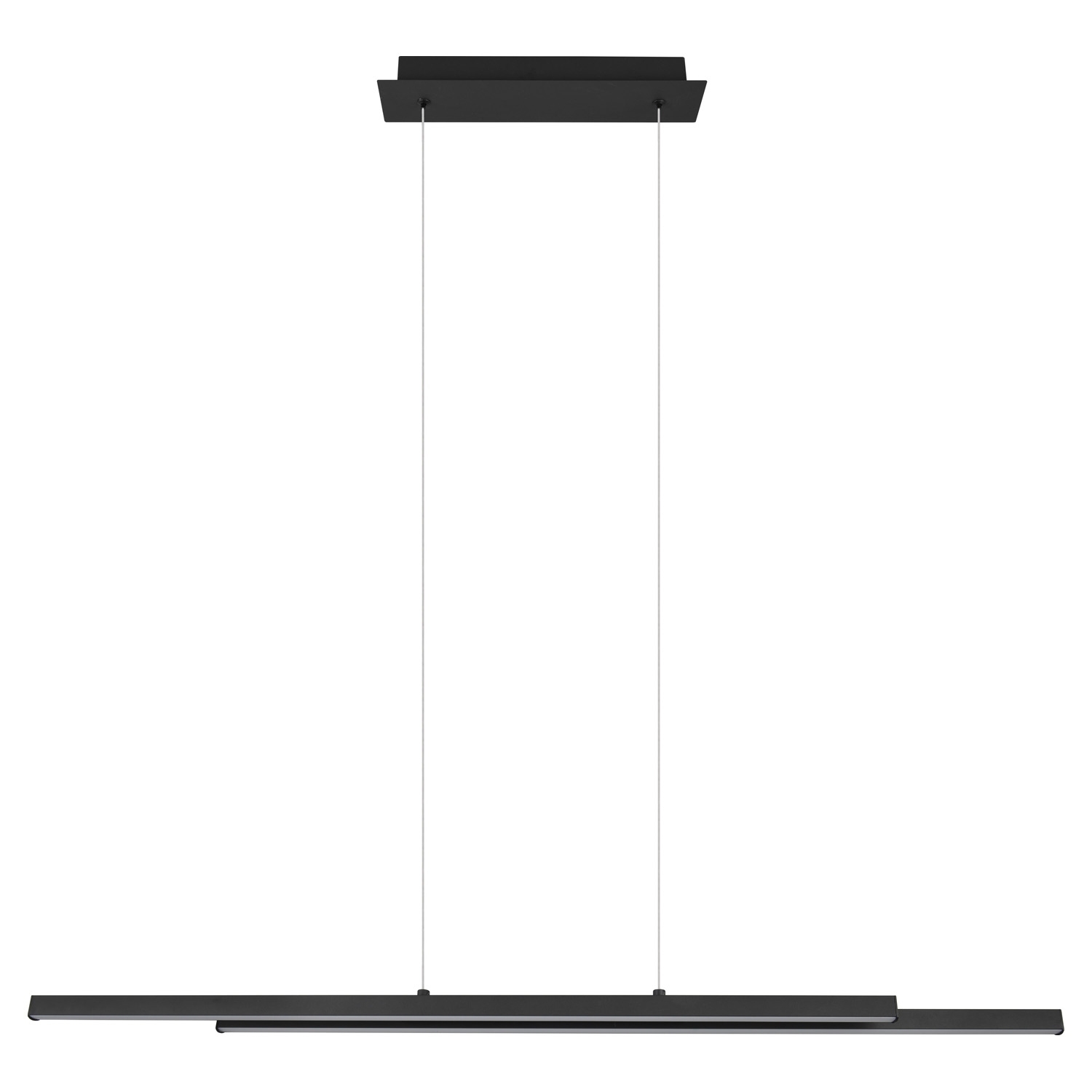 Die LED-Pendelleuchte ODIO von Reality Leuchten vereint modernes Design und praktische Funktionalität. Hergestellt aus schwarzem Metall, besticht sie durch ihre klare Linienführung und ihre edle Optik. Die Pendelleuchte ist höhenverstellbar und bietet somit Flexibilität bei der Anpassung an verschiedene Raumhöhen und Einrichtungsstile. Mit einer Breite von 110 cm, einer Höhe von 150 cm und einer Tiefe von 8,5 cm sorgt sie für eine großzügige Ausleuchtung. Die Leuchte wird mit zwei integrierten LED-Leuchtmitteln geliefert, die eine Leistung von insgesamt 28 Watt erbringen. Mit einer Farbtemperatur von 3000 Kelvin und einer Helligkeit von 3200 Lumen schafft sie eine angenehme Atmosphäre im Raum. Die Leuchtmittel sind nicht austauschbar, aber dank ihrer langen Lebensdauer bieten sie eine dauerhafte und energiesparende Beleuchtungslösung.