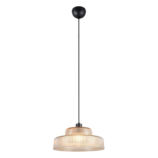 Die Pendelleuchte ABELLA der Marke Reality Leuchten wird aus Metall in Schwarz sowie einem Lampenschirm aus Rillenglas in Amberfarben gefertigt. Diese Hängeleuchte besitzt einen Durchmesser von 35 cm und eine Höhe von 150 cm. Zur individuellen Anpassung ist der Lampenschirm der Pendellampe höhenverstellbar. Als Lichtquelle dient ein nicht vorhandenes und austauschbares E27-Leuchtmittel mit einer Leistung von bis zu 10 Watt.