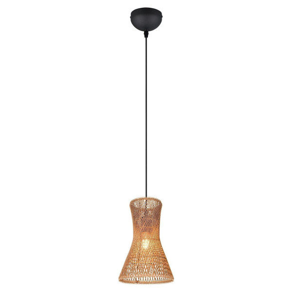 Die Pendelleuchte BIJOU der Marke Reality Leuchten kombiniert schwarzes Metall mit einem braunen Lampenschirm aus Papiergarn. Dank des höhenverstellbaren Schirms lässt sich die Beleuchtung individuell anpassen. Mit einem Durchmesser von 20 cm und einer Höhe von 150 cm bietet sie eine ansprechende Größe. Die Pendelleuchte ist für ein E27-Leuchtmittel mit einer maximalen Leistung von 10 Watt ausgelegt. Dieses ist nicht im Lieferumfang enthalten, kann jedoch ausgetauscht werden.