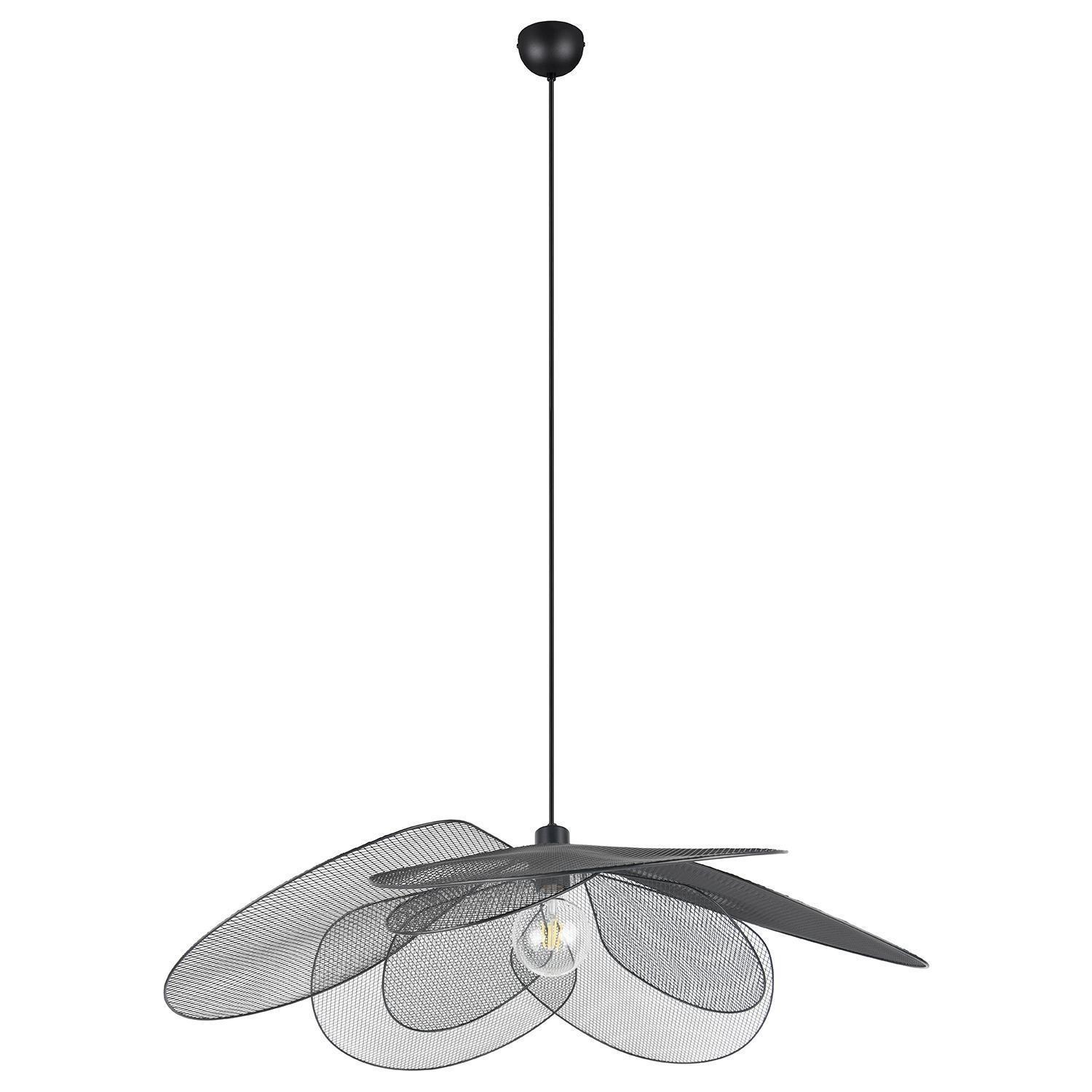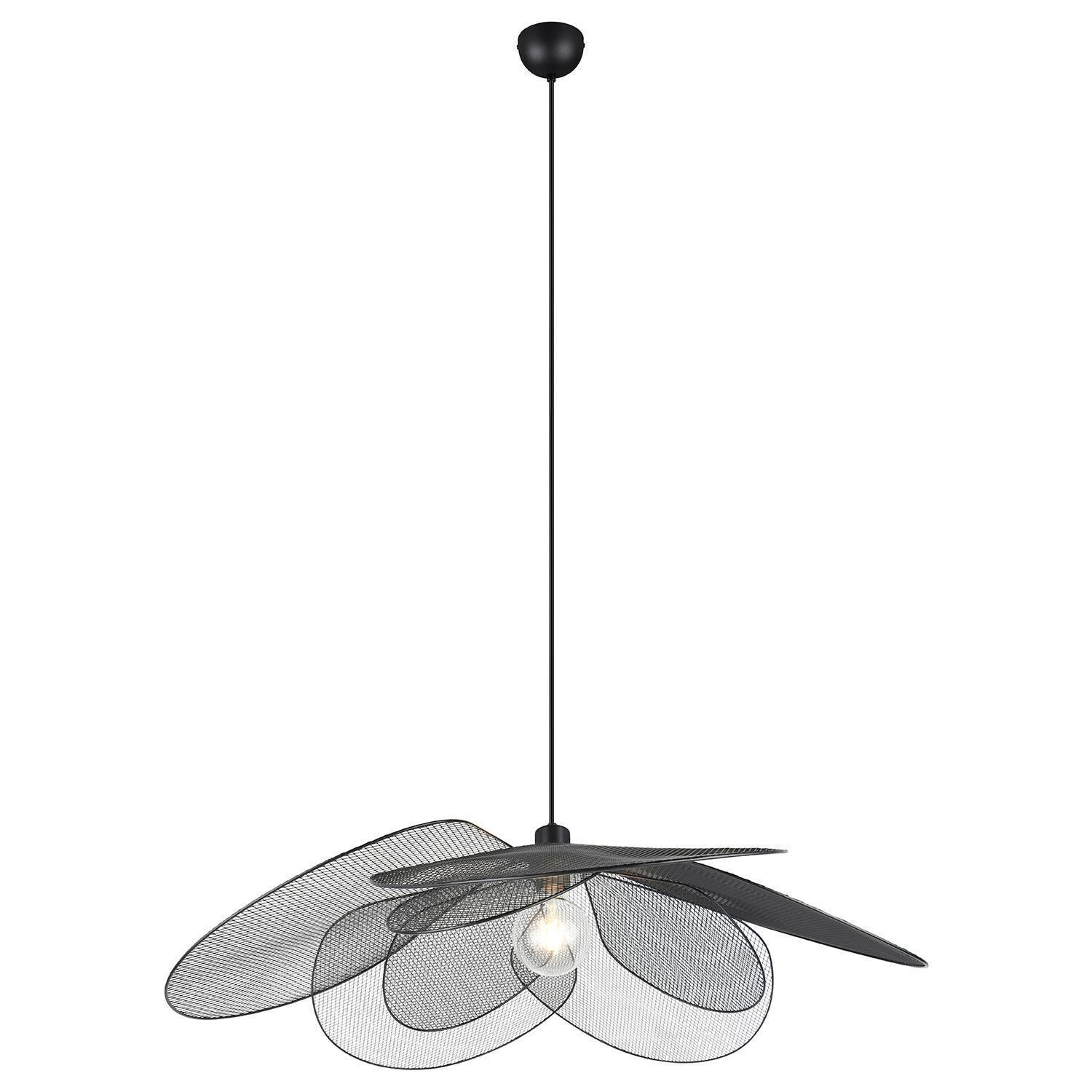Die Pendelleuchte FLEURE der Marke Reality Leuchten besteht aus schwarzem Metall und ist in der Höhe verstellbar. Sie hat einen Durchmesser von 87 cm und eine maximale Höhe von 150 cm. Die Leuchte ist für ein E27-Leuchtmittel mit einer maximalen Leistung von 60 Watt ausgelegt. Ein Leuchtmittel ist nicht im Lieferumfang enthalten, kann jedoch ausgetauscht werden.