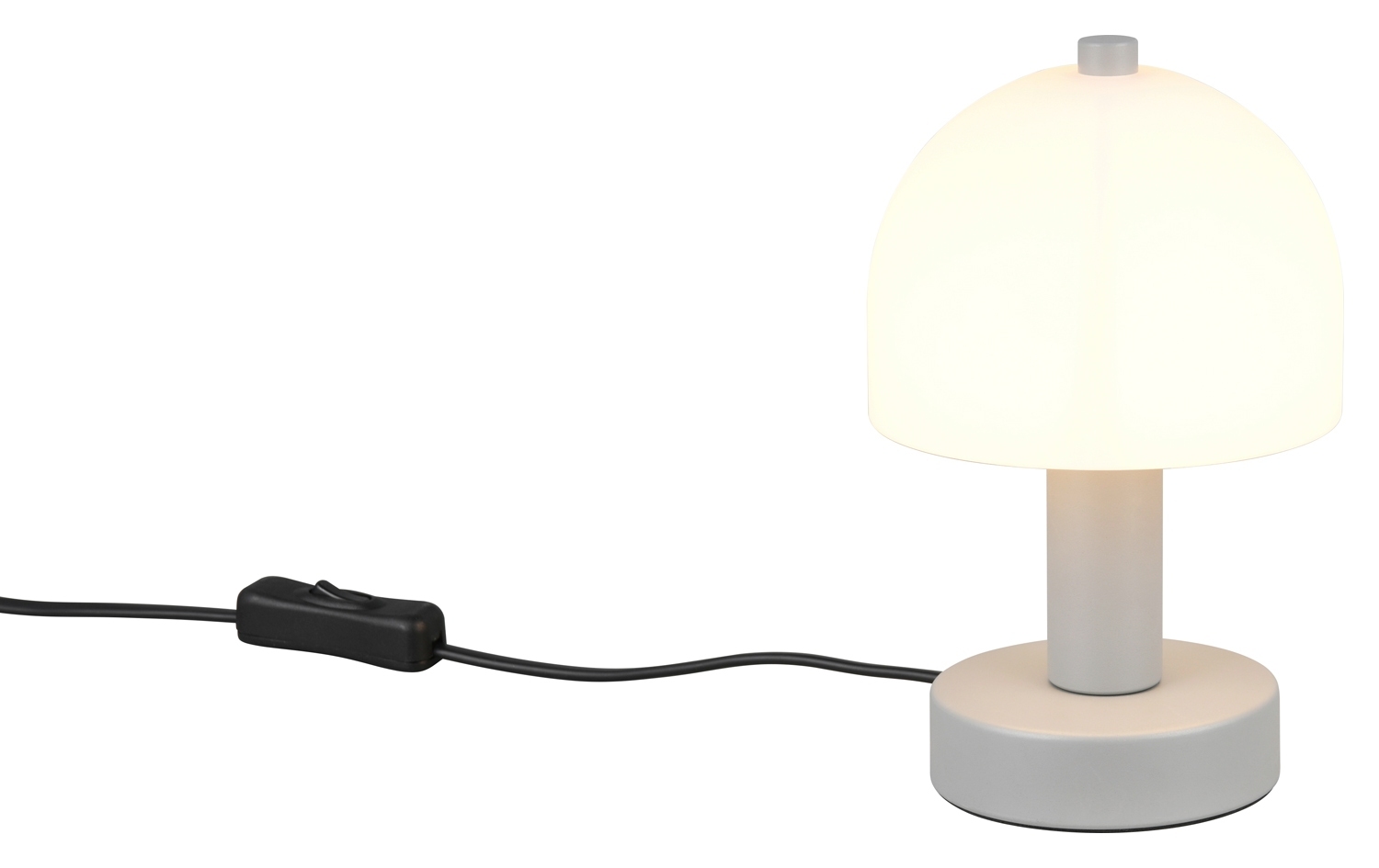 Die Tischlampe GLENN von Reality Leuchten vereint Funktionalität und Ästhetik in einem ansprechenden Design. Gefertigt aus grauem Metall mit einem passenden Lampenschirm aus Kunststoff in Weiß, fügt sie sich harmonisch in jedes Interieur ein. Sie ist für Leuchtmittel des Typs E14 geeignet und verfügt über einen praktischen Schnurschalter für bequeme Bedienung. Mit einem Durchmesser von 12 cm und einer Höhe von 18,5 cm bietet sie eine kompakte Größe, die vielseitige Einsatzmöglichkeiten ermöglicht. Die Tischlampe wird ohne Leuchtmittel geliefert, aber sie ist für den Austausch mit E14-Leuchtmitteln geeignet. Ihr IP20-Schutz bietet Sicherheit für den Innenbereich.