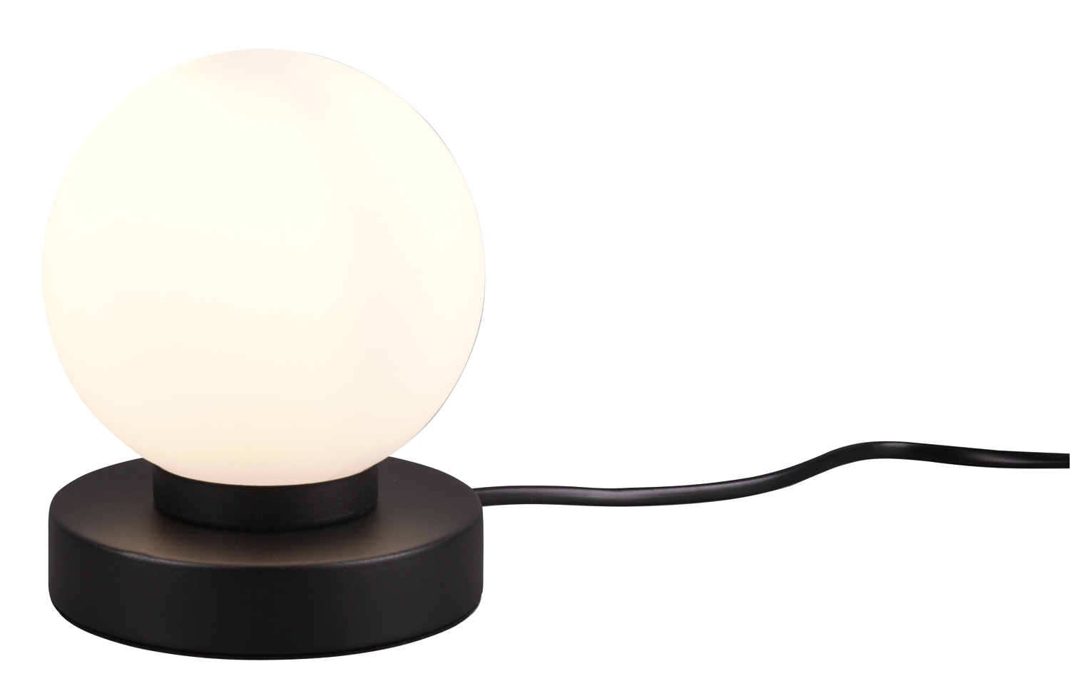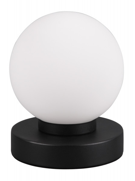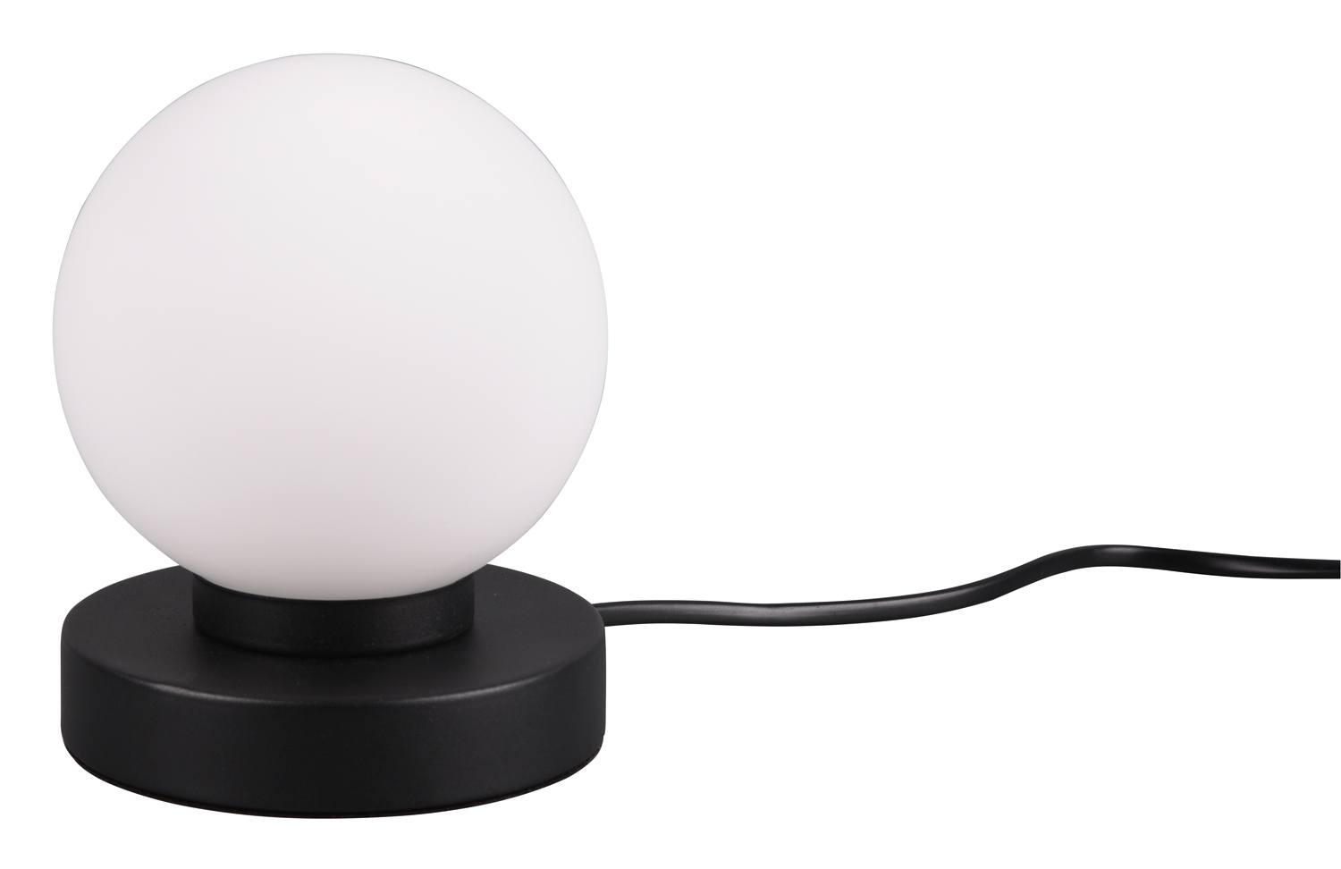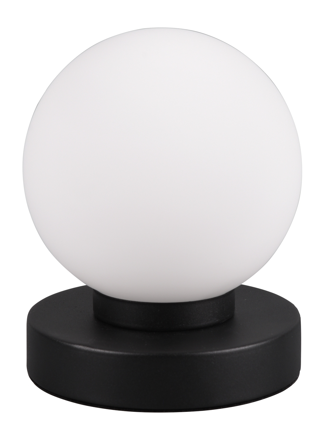 Die Tischlampe aus schwarzem Metall ist mit einer Höhe von 15 cm ein elegantes und modernes Beleuchtungselement. Der Lampenschirm aus weißem Glas sorgt für sanftes Licht. Die Lampe verwendet Leuchtmittel E14 und verfügt über eine praktische An-/Aus-Touchfunktion für bequeme Bedienung. Stilvoll, kompakt und funktional.