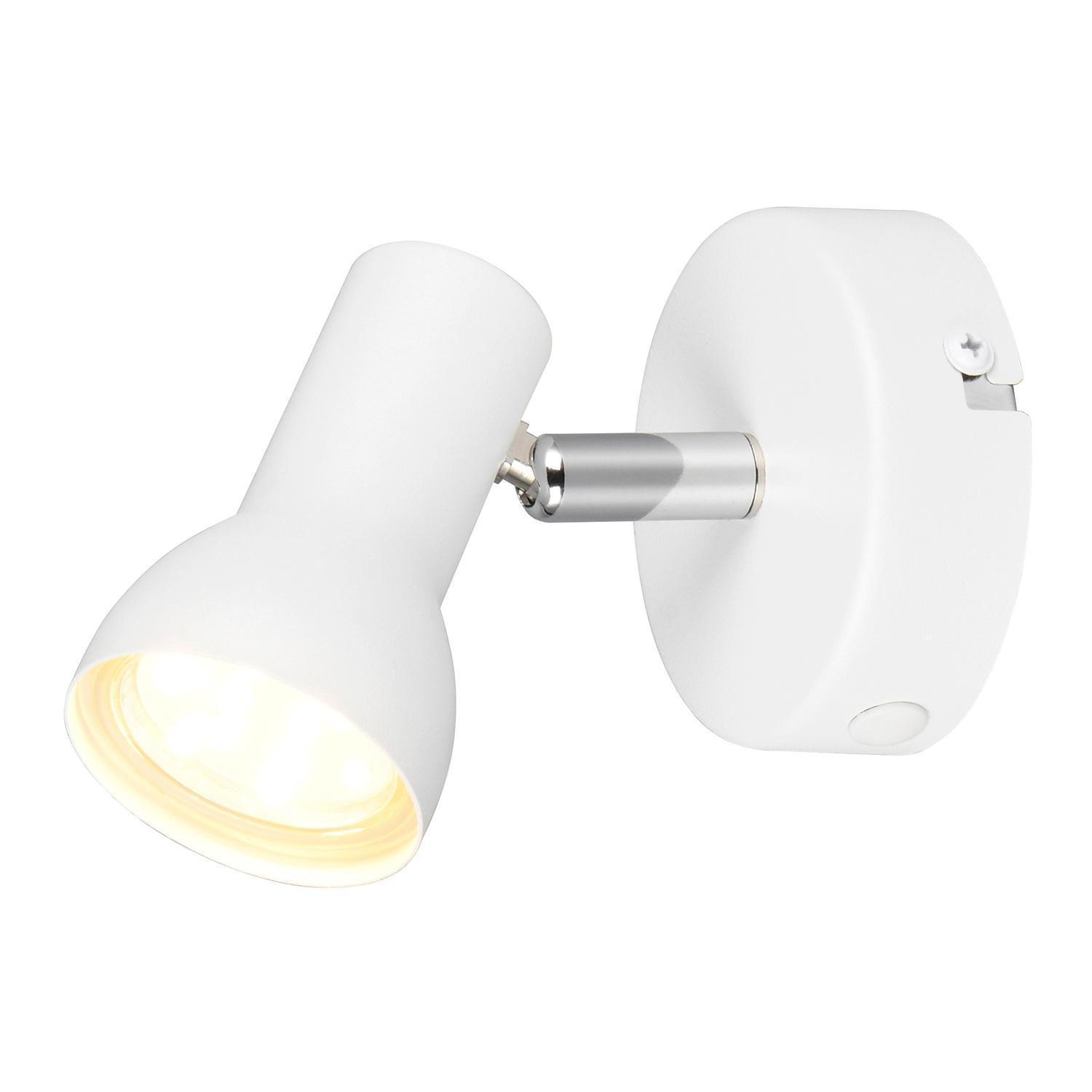 Die Wandleuchte CANTAR der Marke Reality Leuchten ist aus weißem Metall gefertigt und verfügt über einen verstellbaren Lampenschirm zur individuellen Ausrichtung des Lichts. Diese Wandlampe weist eine Breite von 8 cm, eine Höhe von 13,5 cm sowie eine Tiefe von 9 cm auf. Das Gehäuse ist für die Aufnahme eines austauschbaren GU10-Leuchtmittels mit einer maximalen Leistung von 10 Watt ausgelegt. Ein entsprechendes Leuchtmittel ist nicht im Lieferumfang enthalten.