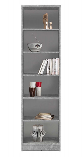 Das Regal in Betondekor mit einer Rückwand in weiß verfügt über einen festen Boden und vier 3-fach höhenverstellbare Einlegeböden. Dies ermöglicht eine optimale Anpassung an die jeweiligen Bedürfnisse. Der mittlere Boden ist nicht höhenverstellbar.